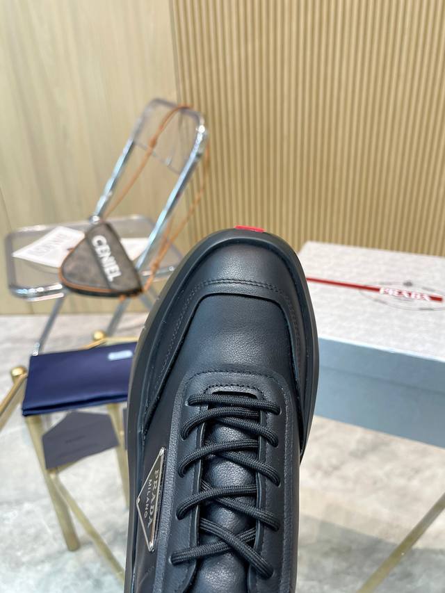 普拉达经典三角标运动鞋 超级好看延续经久不衰的轮廓,采用上等小牛皮革精心制作, 提升格调。款式轻盈,搭配“Prada”经典三角标志,四季皆宜,可与各式休闲造型搭配,在各种风格充斥眼球的时代,最能长久陪伴搭配