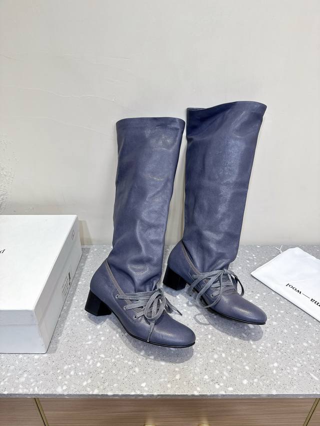 小众潮牌 25Ss秋冬新款 粗跟 圆头 一脚蹬 堆堆 长靴!