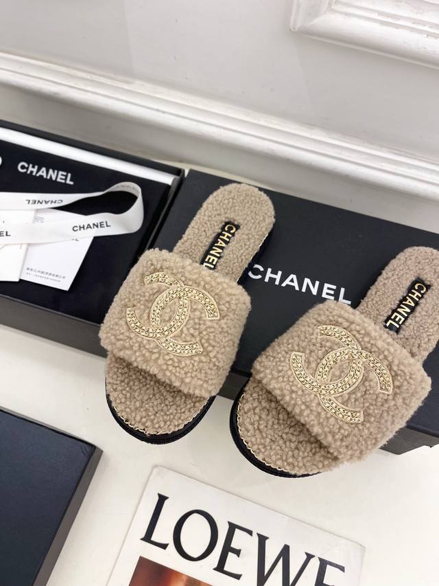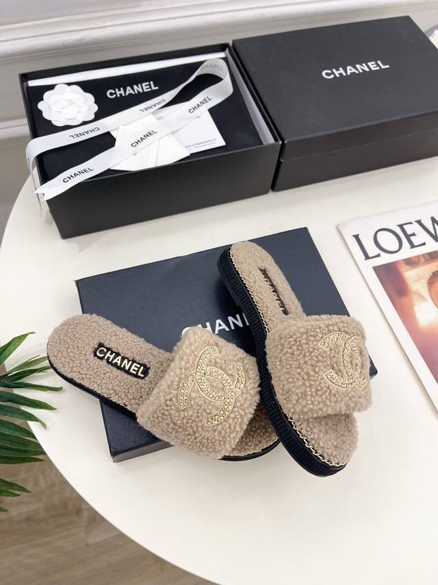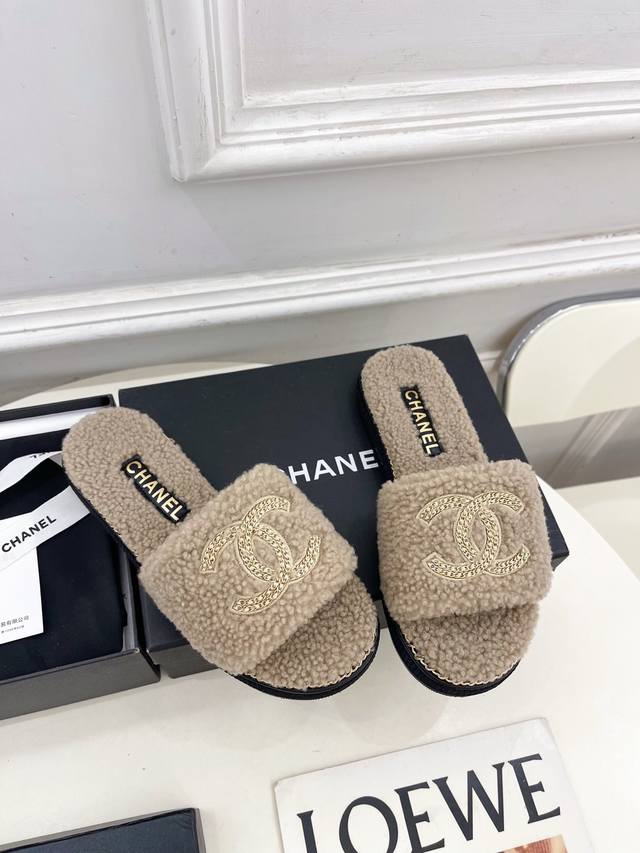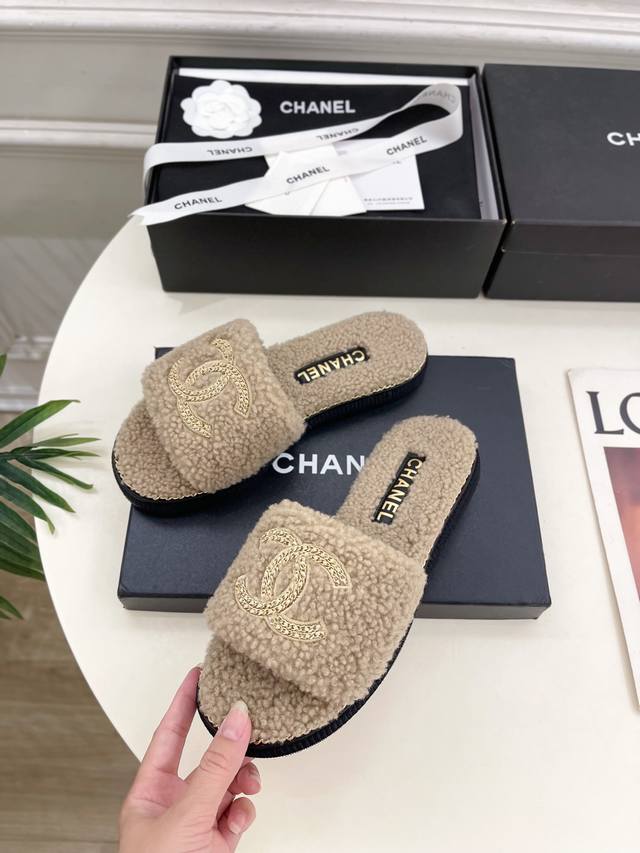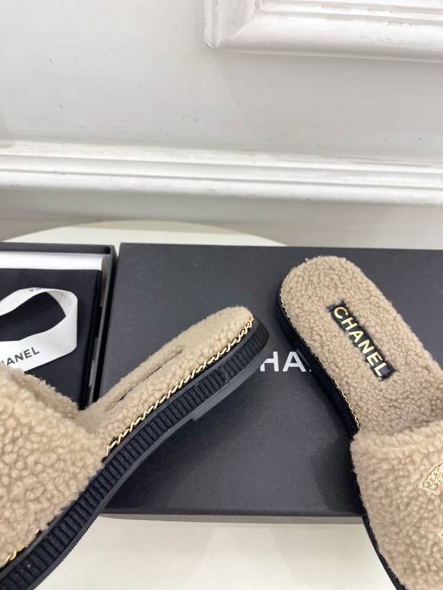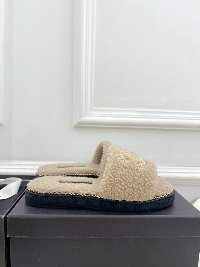 2025 春夏新品 专柜经典款 小香双C链条毛毛拖鞋系列上新