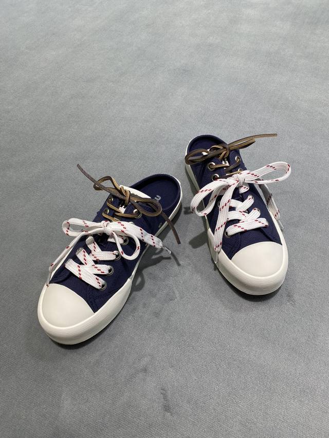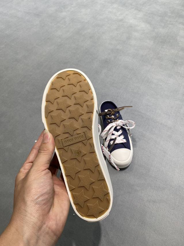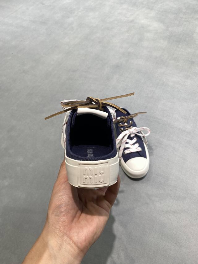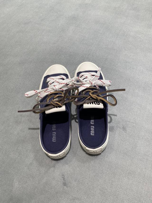 / 工厂P价 原版开发 Miu Miu 2025新款缪缪帆布鞋 半托 颜色:藏蓝半托 面料: 进口Aaa级帆布 內里: 进口Aaa级帆布 大底:开模原版橡胶大底 码