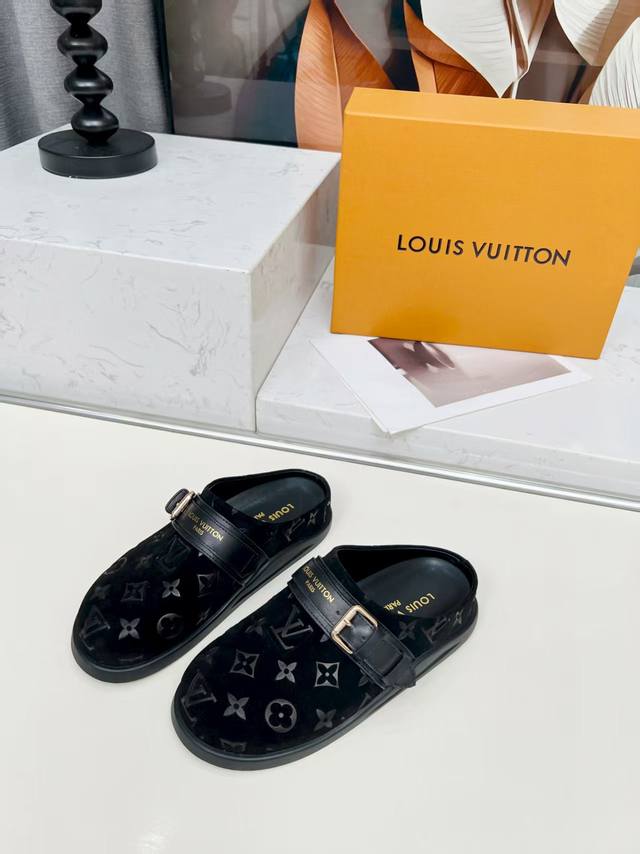 工厂P价 女装女鞋 运动原单上新啦,2025Lv新款拖鞋上新,官网爆款,1比1制作,穿着舒适,面料采用胎牛反绒,内里羊皮,橡胶底,35-40码, 41可订做