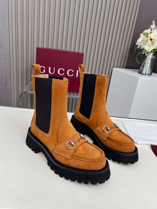 工厂P价 女装女鞋 运动原单新版古琦Gucci 热卖踝靴 非常好搭配双侧松紧设计 方便穿脱,特显复古英伦风,正面古琦饰扣装饰Logo