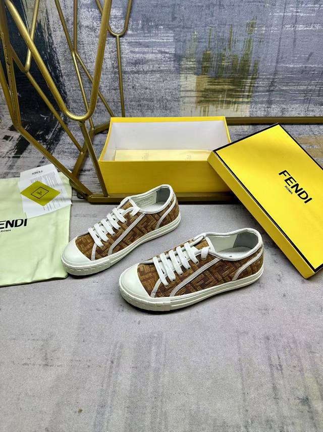 工厂P价 女装女鞋 运动原单最新火爆款 Fendi Domino运动鞋-全新必备款型!轻松、舒适、时尚且百搭。棕色牛仔布材质饰有标志性黑色雪尼尔Ff提花图案,饰有同色系罗缎边饰,原版开模大底 ,女码35-41,男码39-45