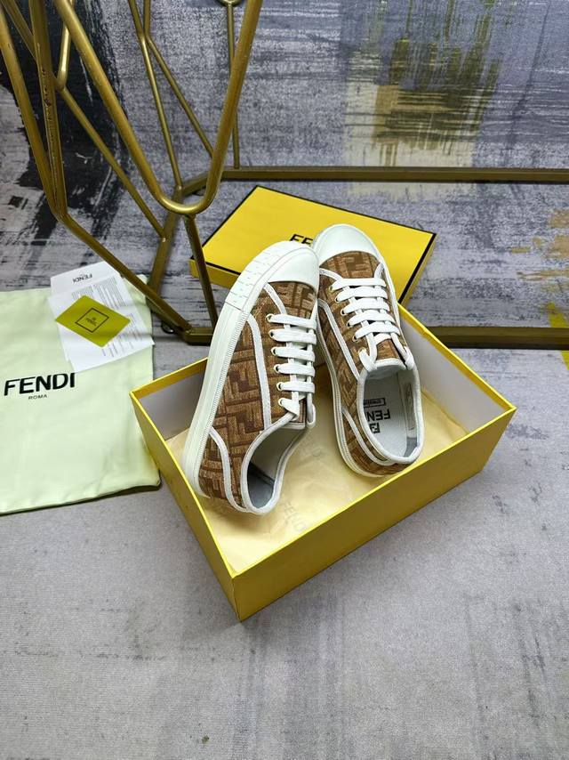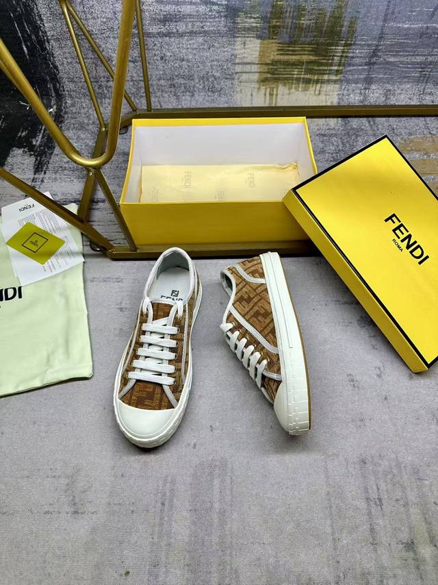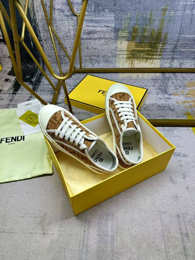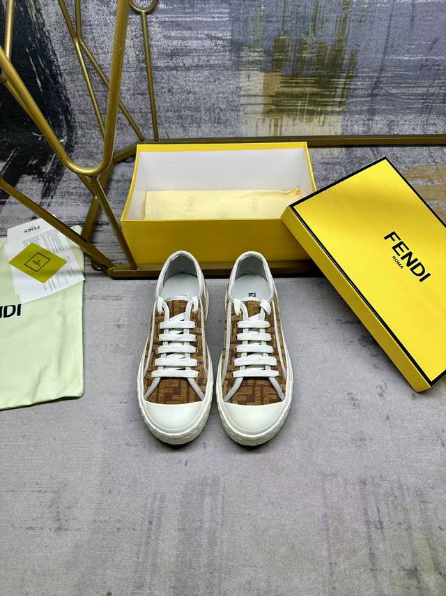 工厂P价 女装女鞋 运动原单最新火爆款 Fendi Domino运动鞋-全新必备款型!轻松、舒适、时尚且百搭。棕色牛仔布材质饰有标志性黑色雪尼尔Ff提花图案,饰