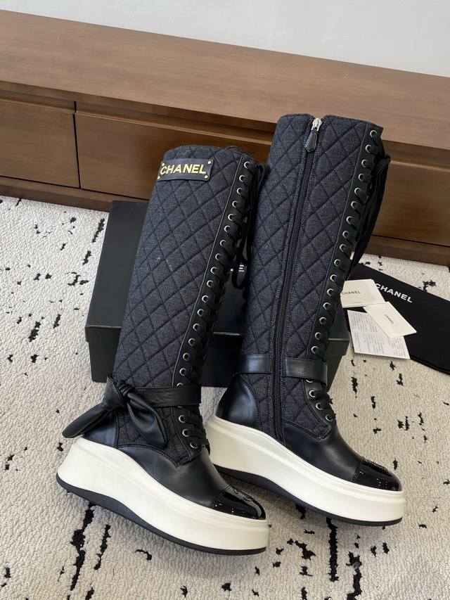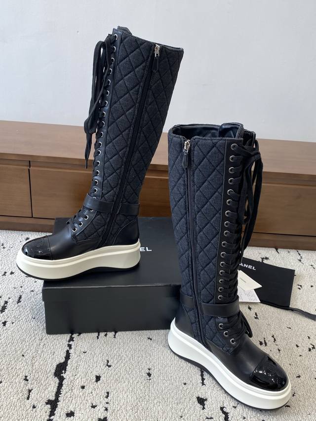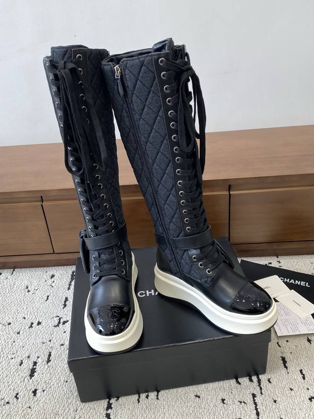 Chanel 2025S秋冬系列厚底高短靴,高筒和矮简两款分别用进囗牛皮打造,外增高度5Cm超显腿长,