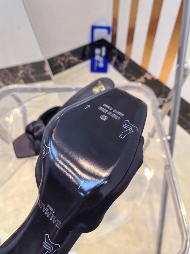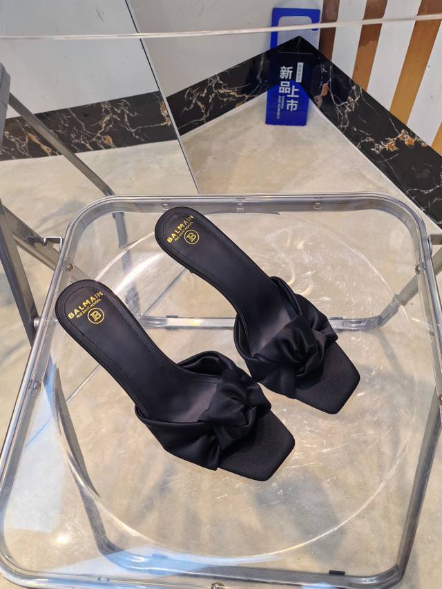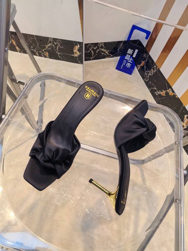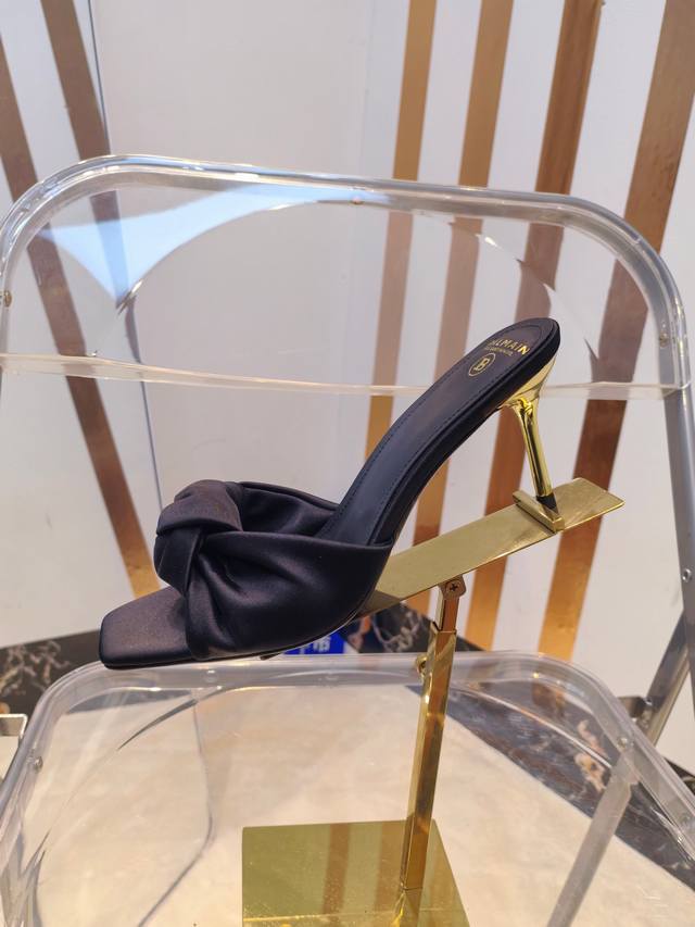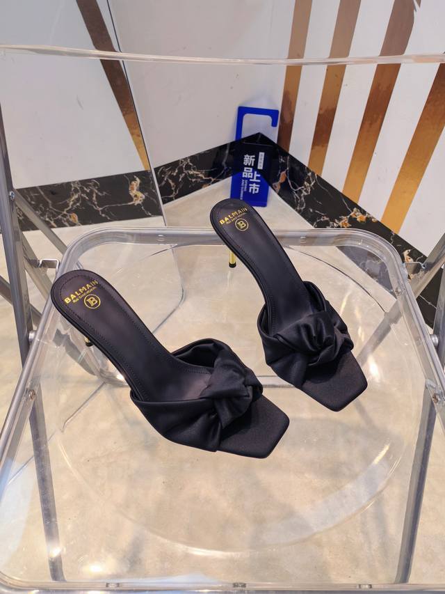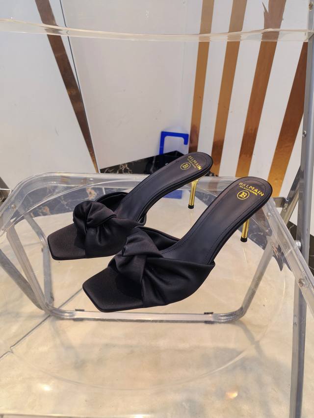 工厂P价 女装女鞋 运动原单 ,* 巴尔曼2025最新款走秀方头高跟拖鞋