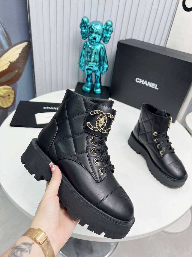 工厂P价 女装女鞋 运动原单 2025Ss Chanel 厚底乐福鞋 裸靴