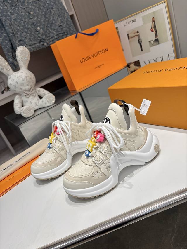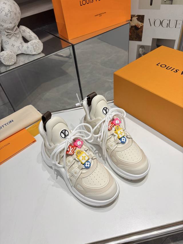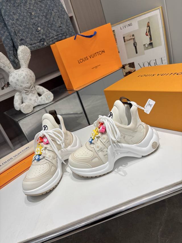 工厂P价 女装女鞋 运动原单 2630春款新品上市 Louis Vuitton 超级百搭瘦腿神器弓底设计活力十足,新的经典彩色老花搭配彩色的扣子,上脚舒适优雅