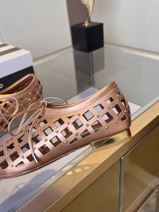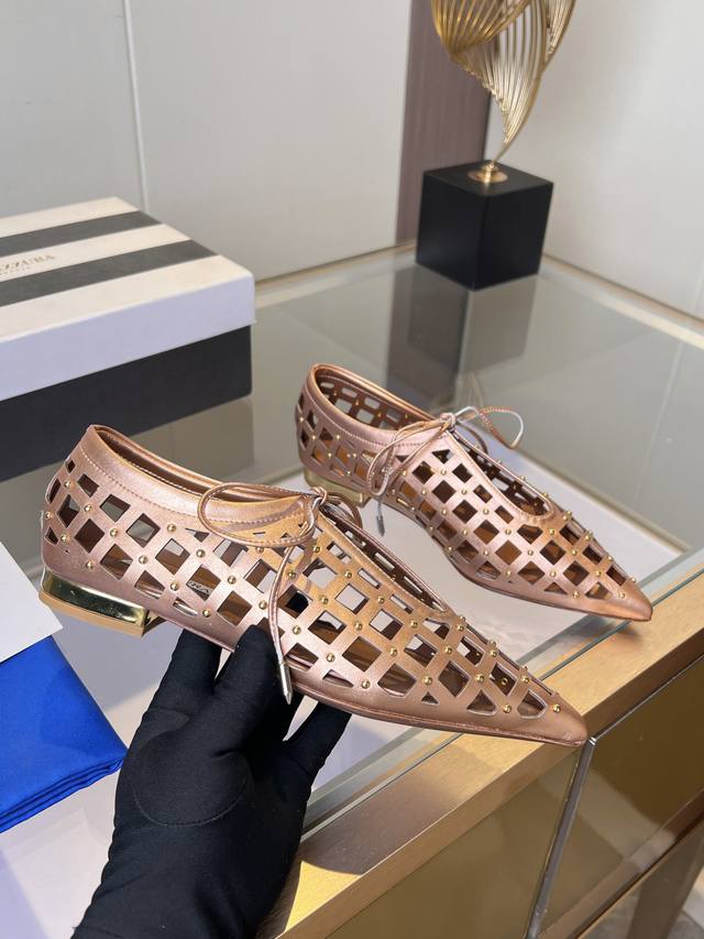 这双平底凉鞋,是欧美街头的率性缩影。**简约廓形**遇见**闪耀铆钉**,碰撞出硬核的时尚火花。鞋面精选**质感皮革 耐磨材质**,以**精工打钉**点缀 **冷冽金属光泽**瞬间点燃整体,犀利又吸睛。