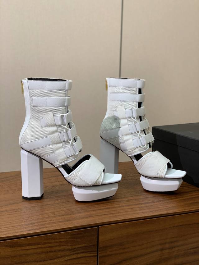 / 工厂P价 女装女鞋 运动原单 Bal*Ain 水台凉鞋。愈发別致出众,无敌气场、无敌好看。鞋面牛皮进口网布。牛皮垫脚。真皮大底。跟高10.5Cm 码数:36-4