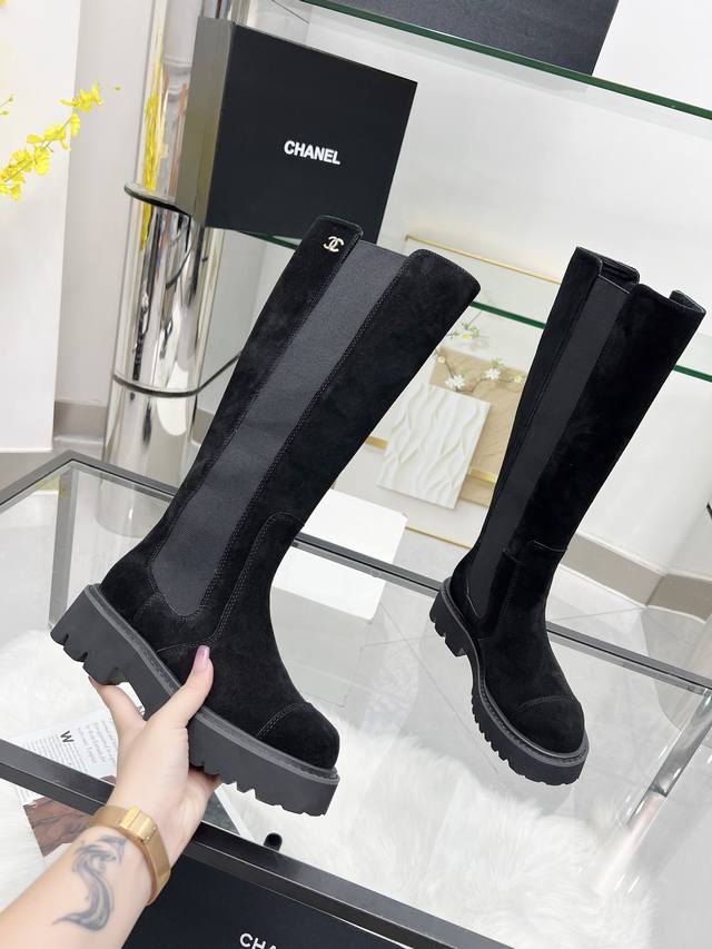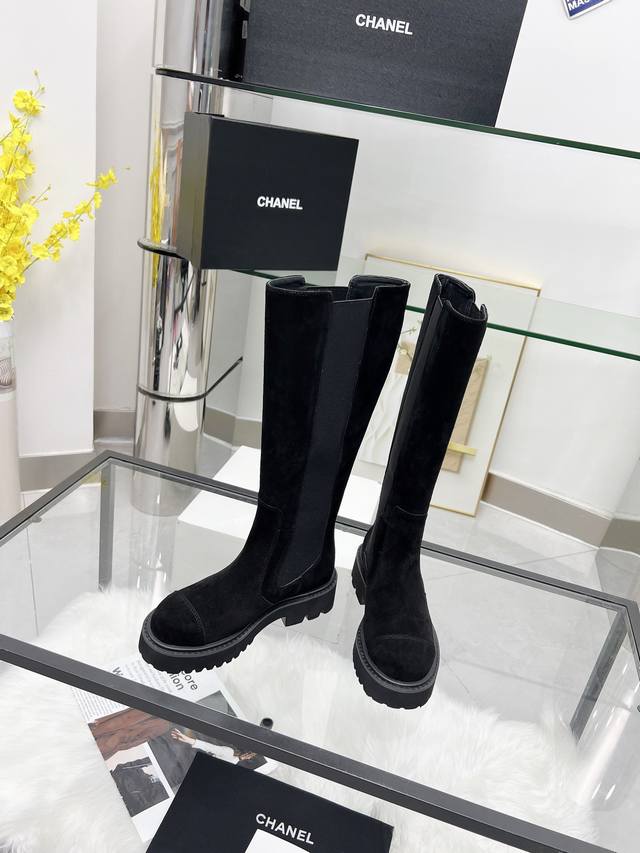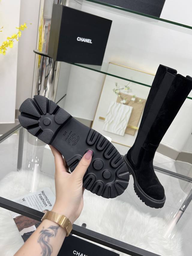 / 工厂P价 女装女鞋 运动原单 Chane*25Ss小香秋冬新款 鞋子轻便舒适,松紧带设计一脚蹬, 鞋面:高丝光面料 内里:牛皮内里 筒高:约16Cm 跟高:约5