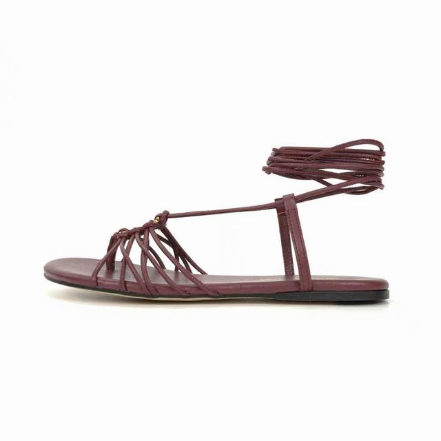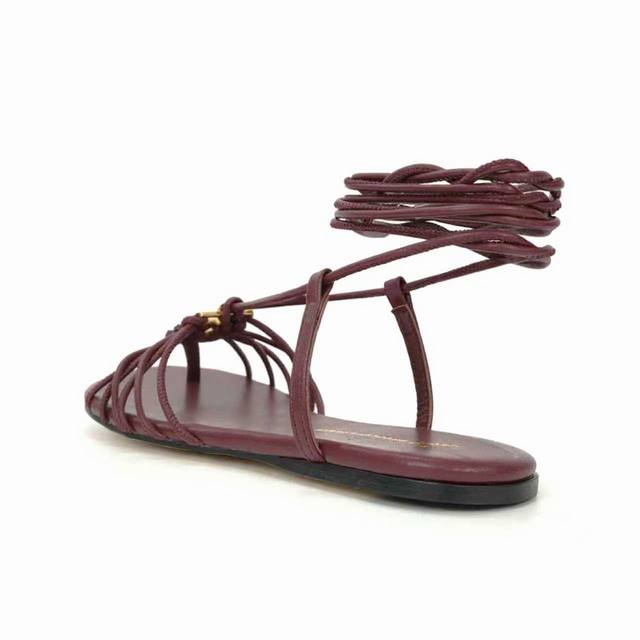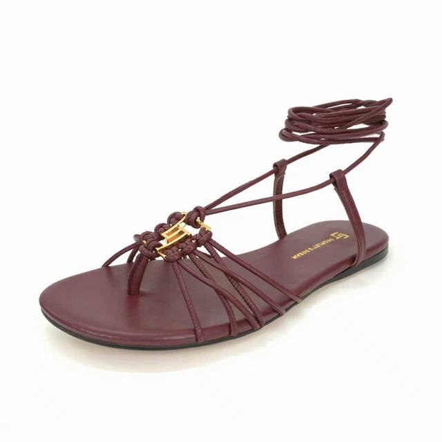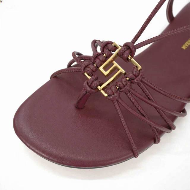 / 工厂P价 女装女鞋 运动原单 Gj品牌的平底凉鞋。 采用绑带设计,缠绕脚踝增添性感与时尚感,鞋头处有品牌标志性金属扣装饰,休闲时尚,精致又具高级感,适合搭配裙装