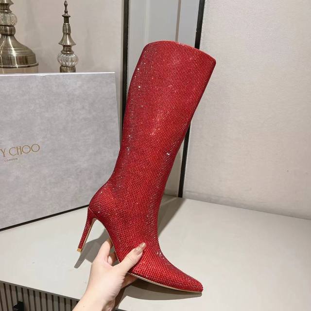 Jimmy Choo 独家发售独家开模采用最新工艺设计,立体感强多种工艺融合一起,颠覆时尚,超级有型!小红书爆款百搭又潮流,可盐可甜!鞋面采用进口水钻机器压制在鞋面,不易脱落,一款高级定制的设计一款水钻靴子,明星同款。上脚效果真的超级好看,时尚感满满的,一款必备神器款