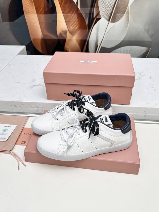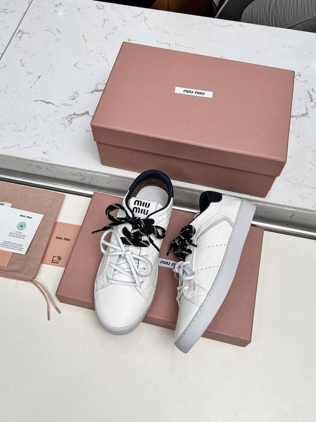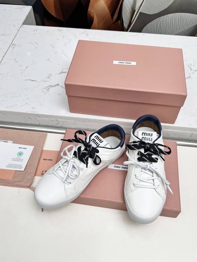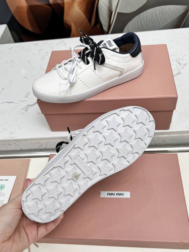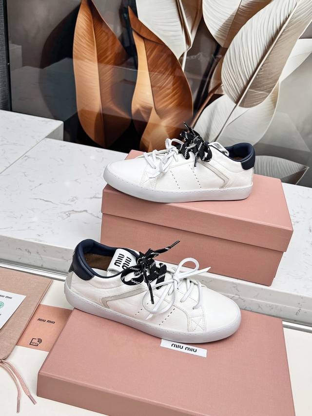 Miumiu缪缪 最新款复古风运动鞋颜值担当火爆款运动鞋 不得不入的一款~做旧时尚,简约高级 随意搭配上脚非常舒适,年度必入款 最新走秀款运动鞋国内外博主刷爆的一款 小红书种草系列 复古又时髦上脚美炸了简约的运动板鞋设计,极具辨识度的鞋舌,打造佛系甜美的休闲风~~上脚气场十足随意搭配 主流双鞋带设计 主打一个时尚
