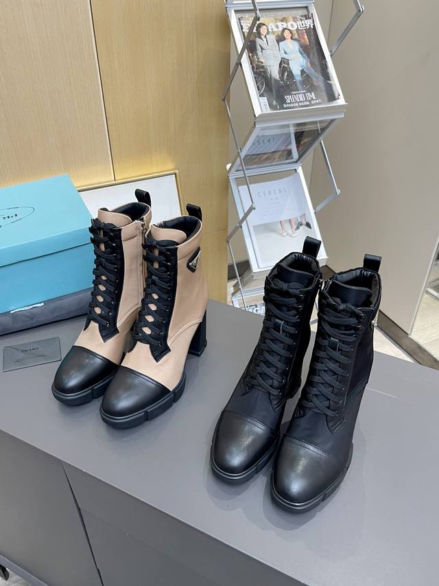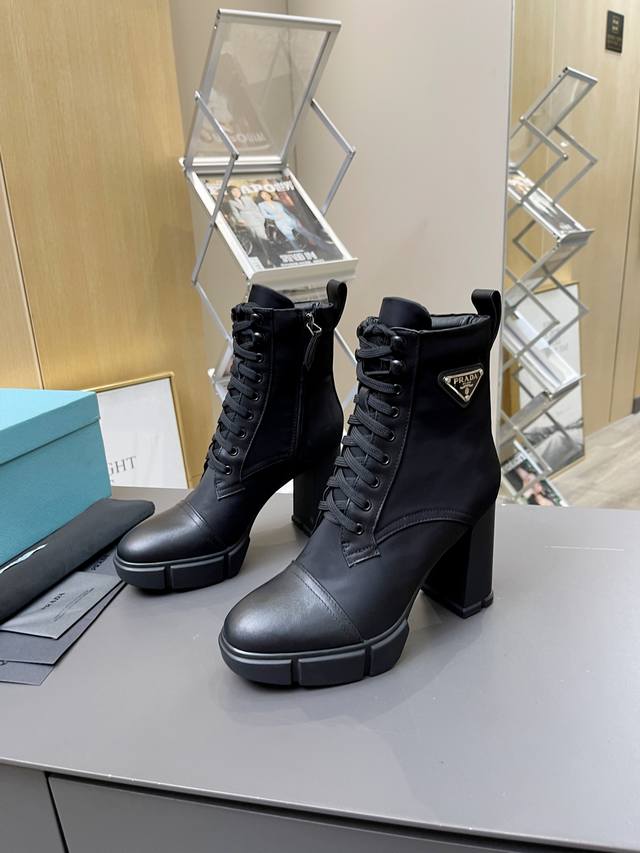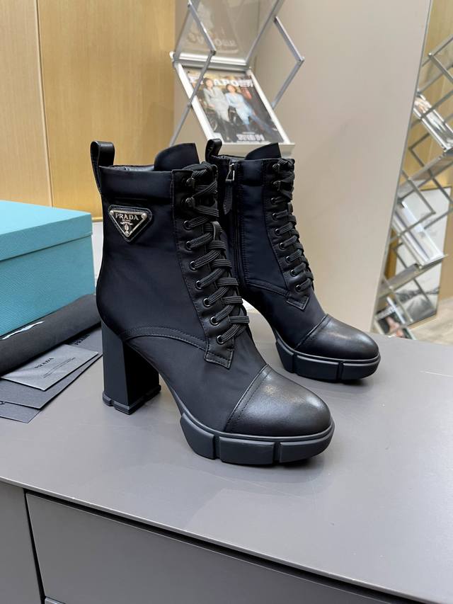 工厂P价 女装女鞋 运动原单 **Prada秋冬王炸短靴|9.5Cm高跟穿出超模腿!明星网红同款,舒适到尖叫!**