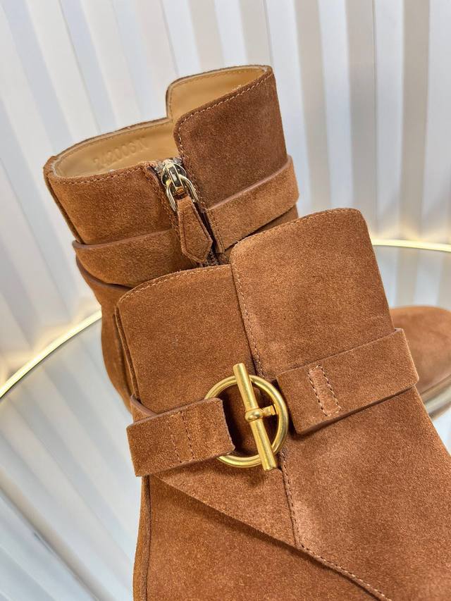 简单的品牌五金扣点缀,简单大方,时髦秋冬新款短靴&
