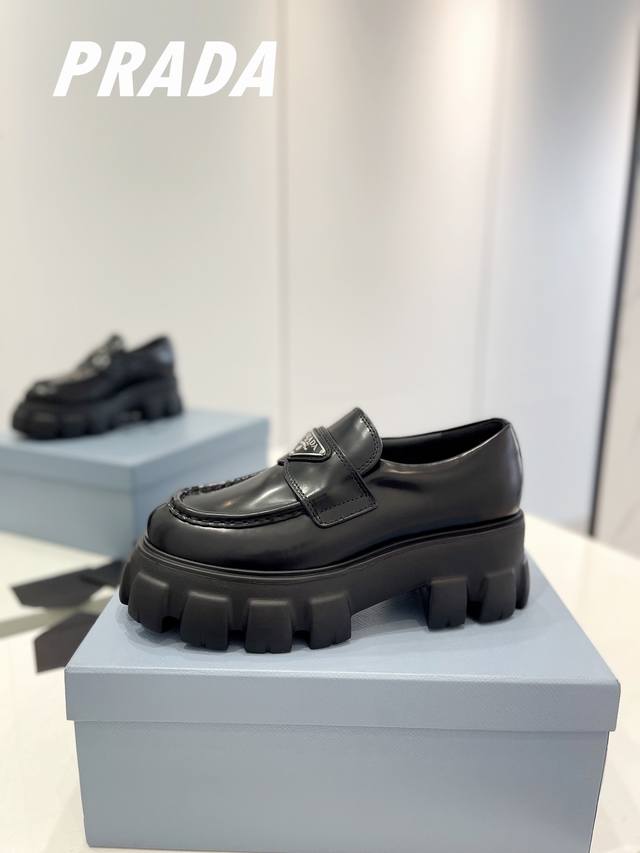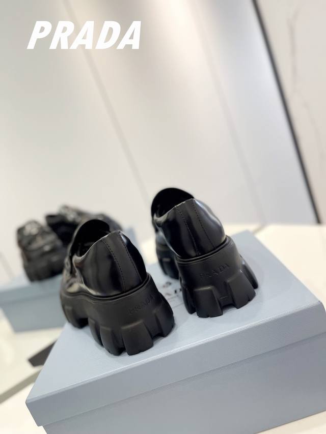 经典的车轮厚底+经典的乐福鞋面Prada这款厚底休闲不失误的款好鞋子,1:1还原的鞋子