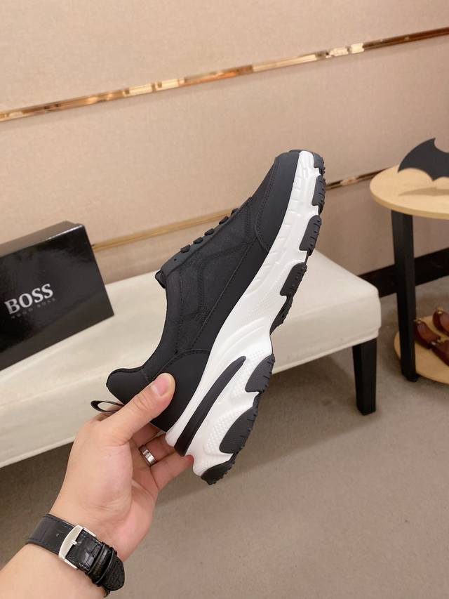 工厂P价 Boss 最新休闲男鞋,欢迎1:1对比,爆单款Boss香港专柜休闲鞋,专柜品质,支持验货,优质做工,鞋面采用意大利进口胎牛皮 透气网里羊皮鞋垫原版时尚运动大底 ,休闲时尚,高端品质,码数:38-44。45可定做不退换!