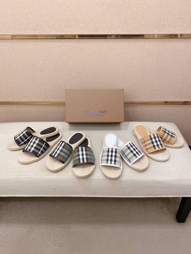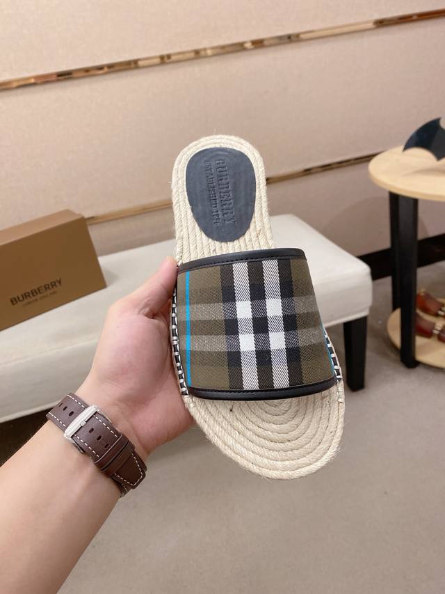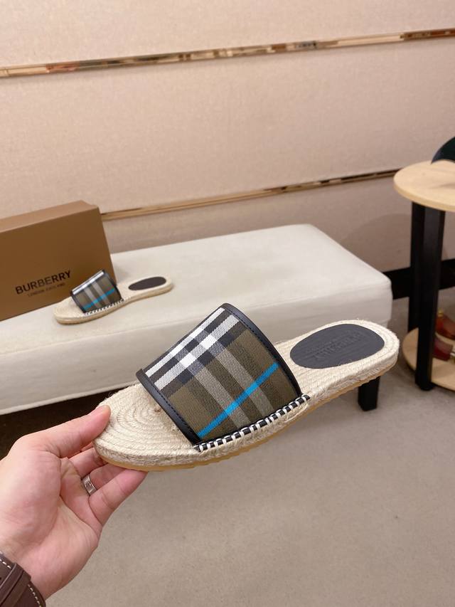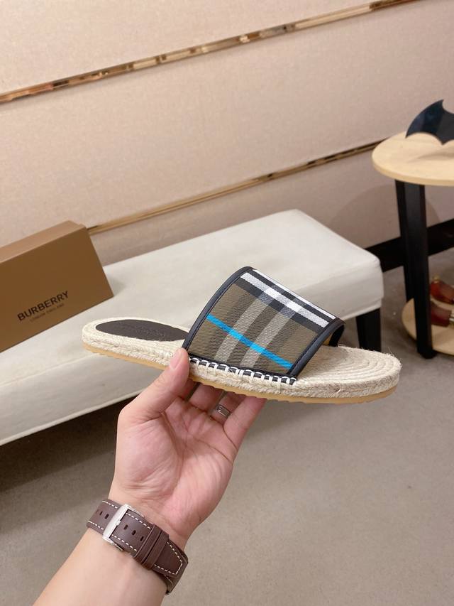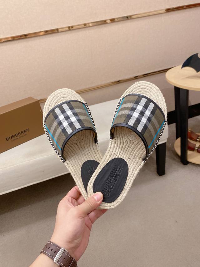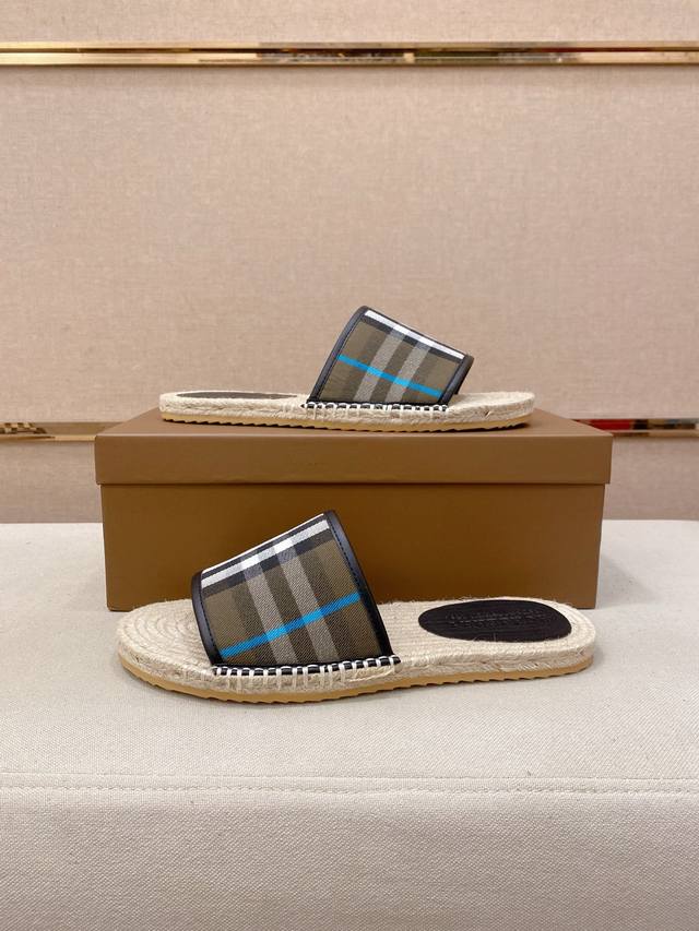 工厂P价 Burberry 巴宝莉 拖鞋 男鞋高端品牌 官网1:1最新力作:原版开模定制,面料釆用进口原版布料制作,麻绳升级版大底,更轻便,防滑。市场顶级品质,