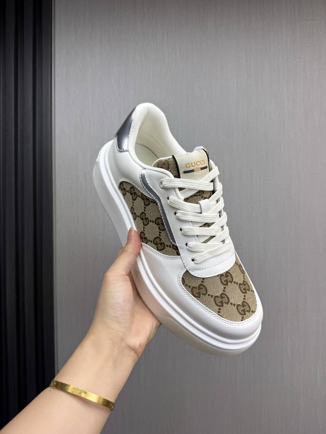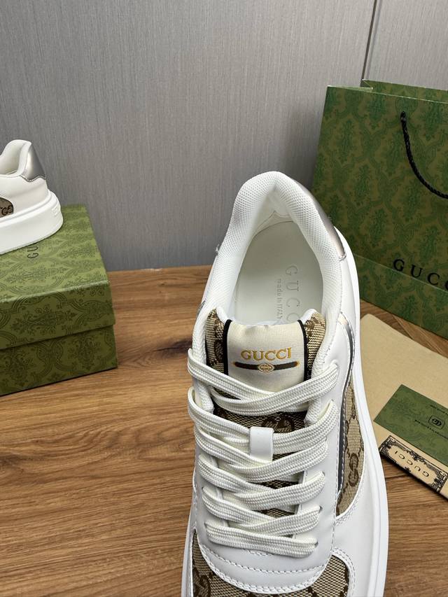 工厂P价 Gucc* 古奇.高版本专柜同步发售 男士新款板鞋 鞋面进口牛皮 ; 凸显 高端 档次 贵气 做工考究 内里采用原版牛皮 ,鞋底:原厂特供原版大底,实