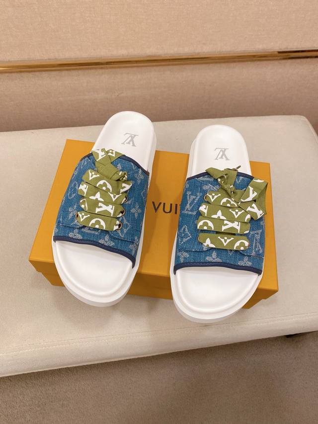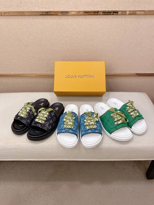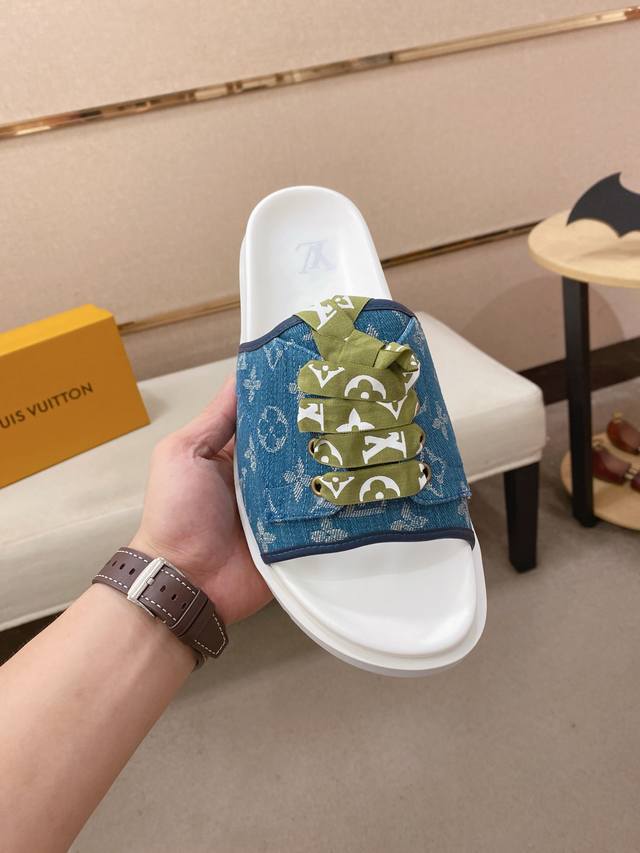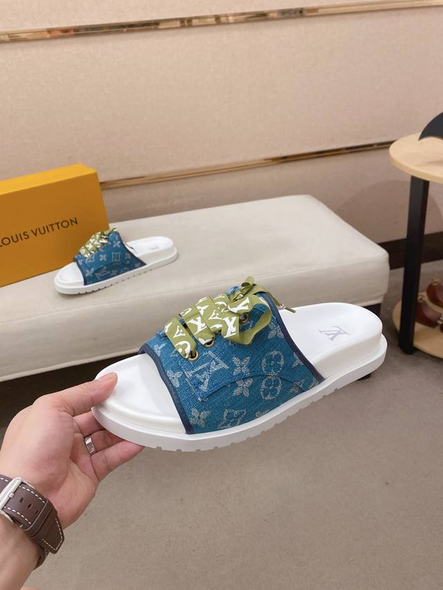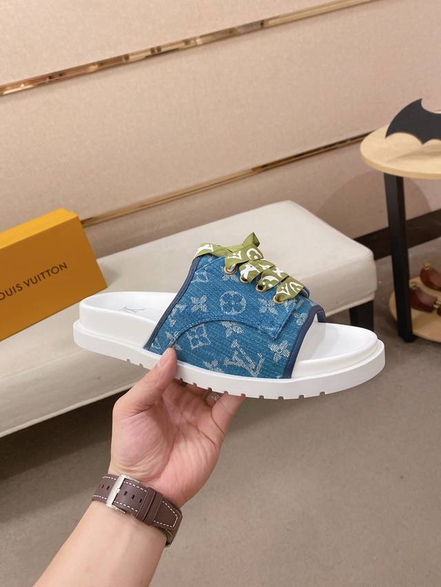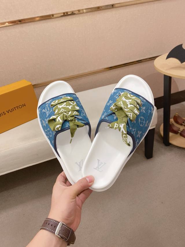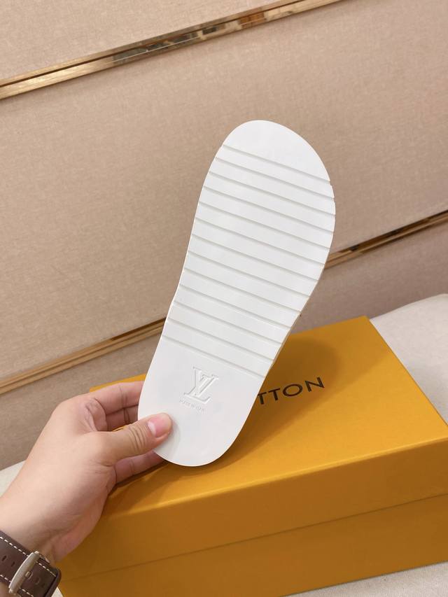 工厂P价 Lv打造顶级代购 男士春夏拖鞋专柜同步 鞋面意大利进口牛皮搭,标志图形高品质工艺,鞋底:原厂特供原版底,独家活动成型底超级舒适,原厂跟单货,高品质,可随意进出专柜,欢迎对比,码数38-44。