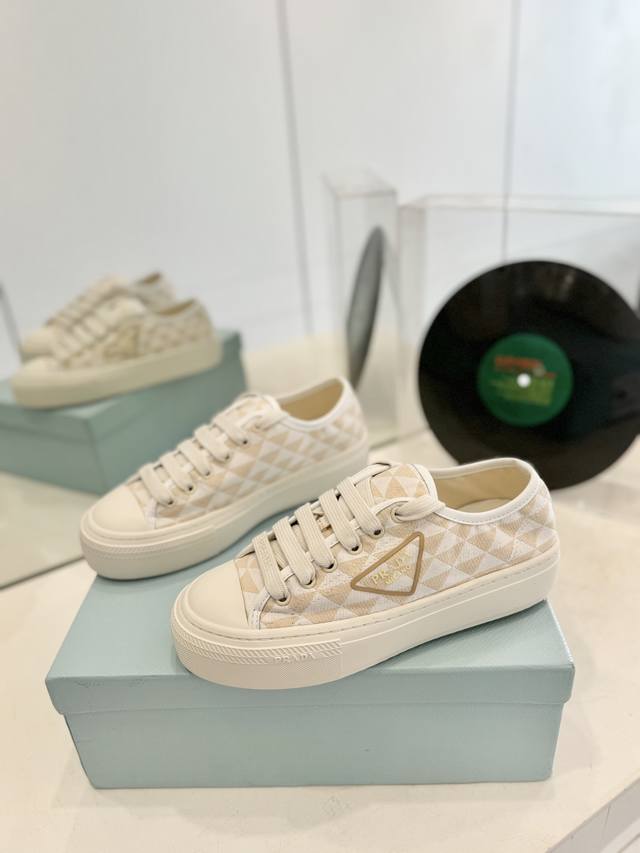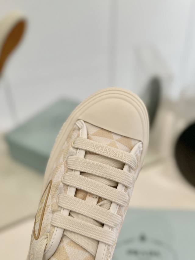 这款运动鞋延续经久不衰的轮廓,是新款经典单品采用柔软斜纹帆布棱形格印花面料提升格调款式轻盈,搭配“Prada”标志四季皆宜