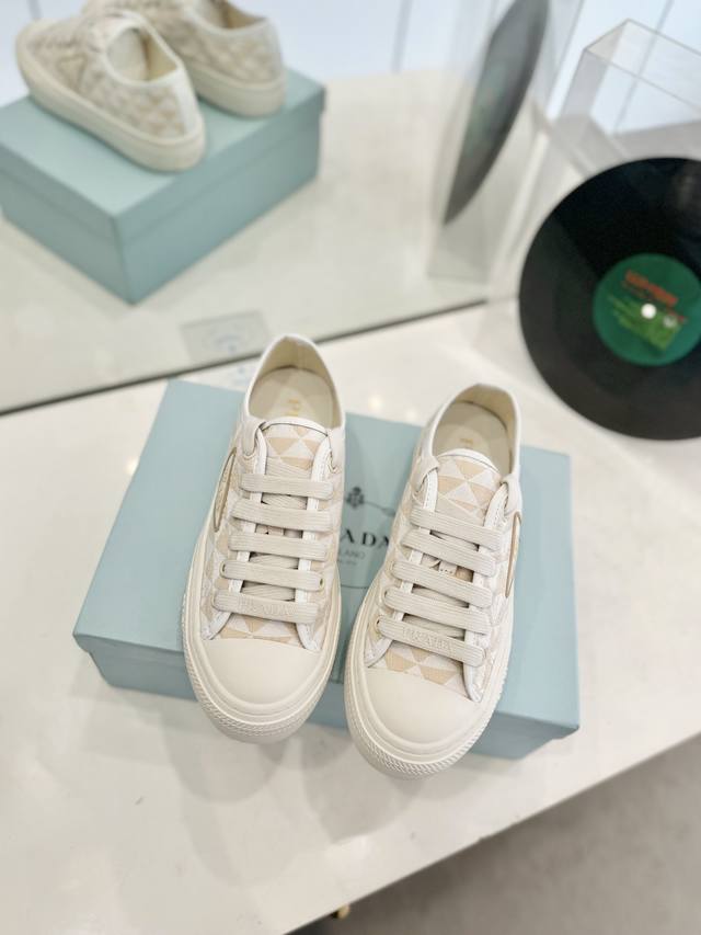 工厂P价 Prada普拉达 新款帆布小白鞋