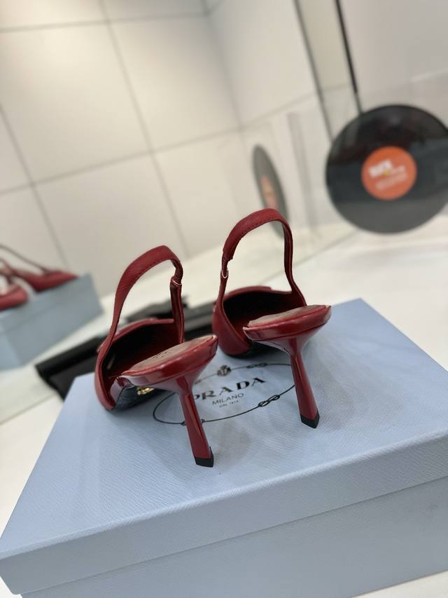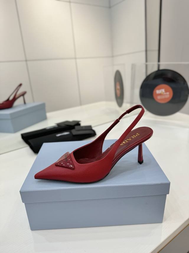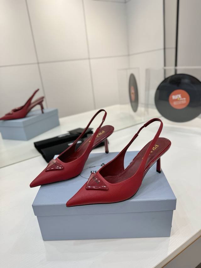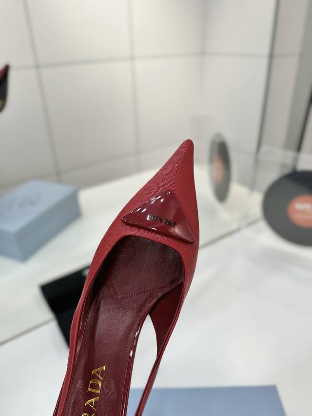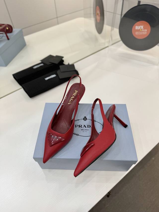 工厂P价 Prada 普拉达 专柜走秀款尖头凉鞋 三角扣标 高跟 早春走秀款! 鞋面:高定制掌纹 内里:进口水染羊皮 大底:原版意大利真皮大底 跟高:7.5Cm