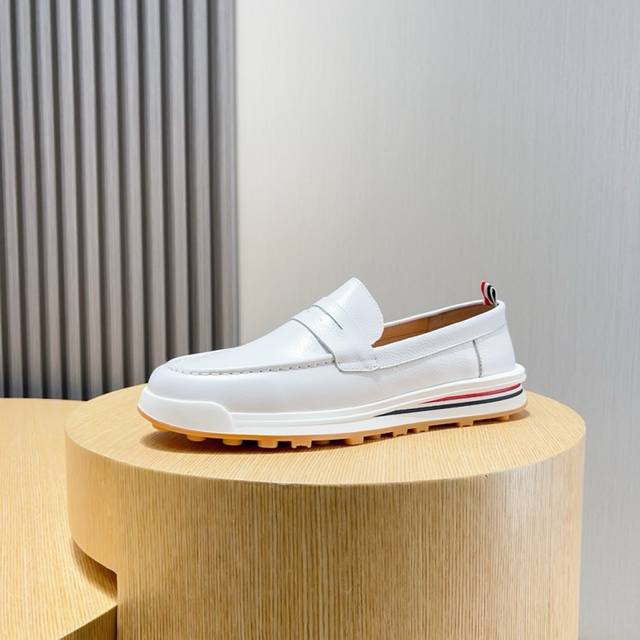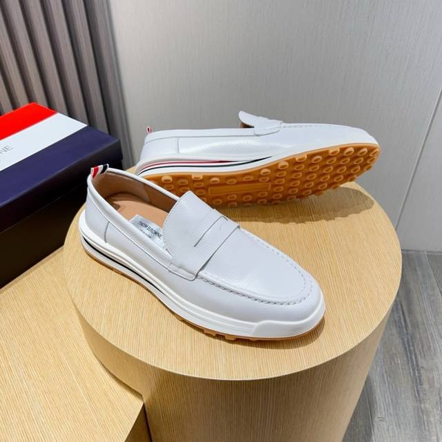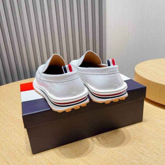 工厂P价 Thom Browne 汤姆 布朗 汤姆这个邪魅酷感的新锐品牌 让我们在这个夏天有了放松 时髦 个性的新选择 Tb白鞋风暴.鞋面采用原版头层小牛皮内里羊皮 鞋底采用原版鞋底制作 织带红白蓝3道杠杠点亮了品牌的元素 码数:38-44 45定做