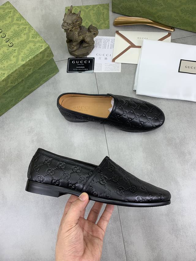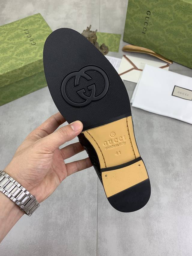 工厂P价P 实价 水染牛里 古驰懒人套脚皮鞋爆款精选 古奇Gucci 官网最新款古奇懒人皮鞋,爆款版型简洁大气,潮男专属.独有的官网最新品牌原版双G压花素元素古