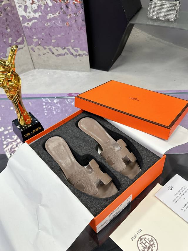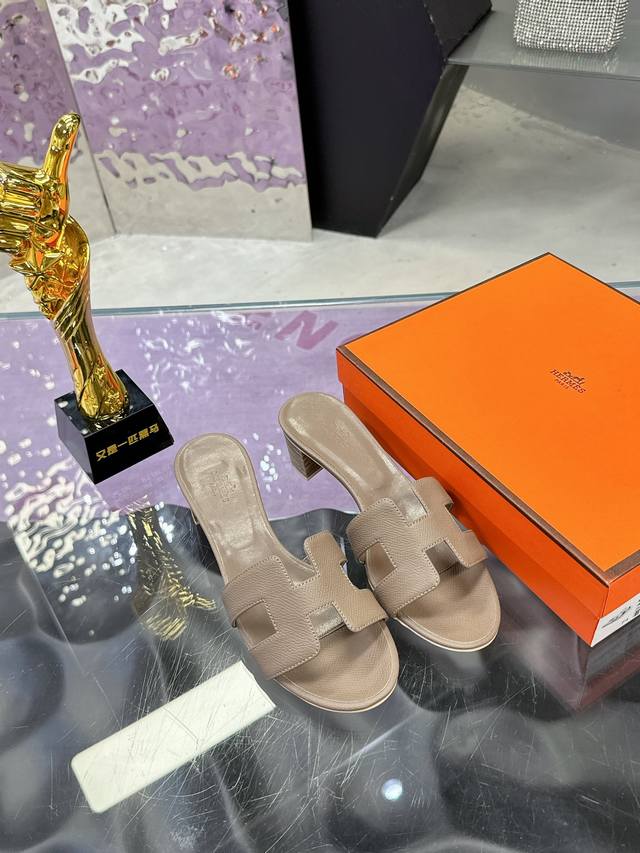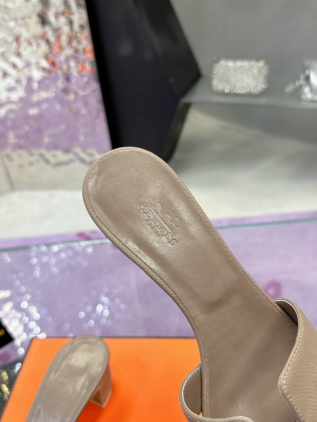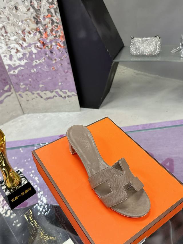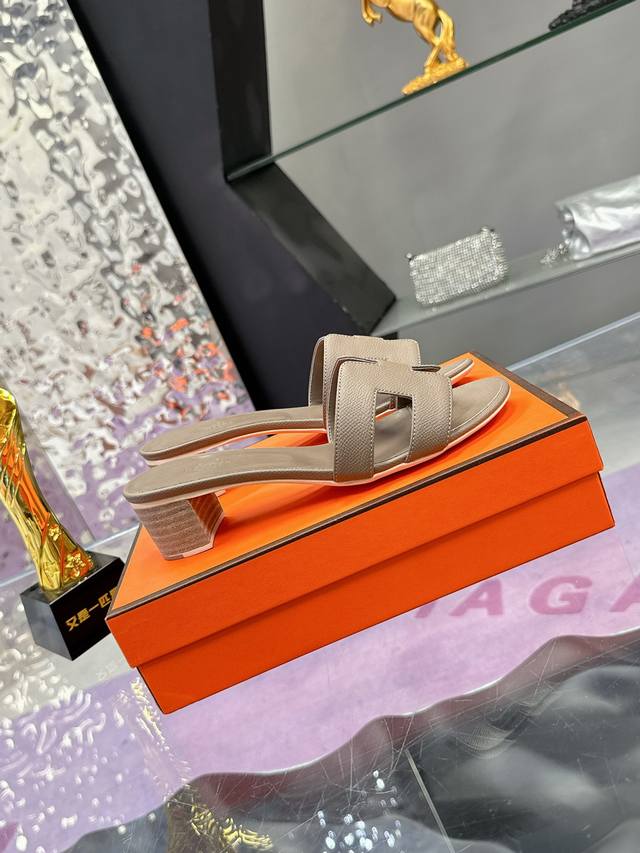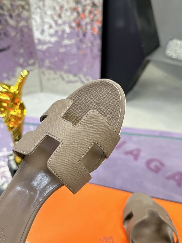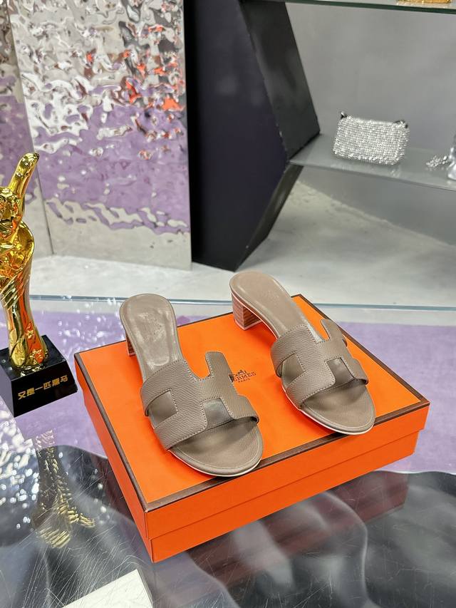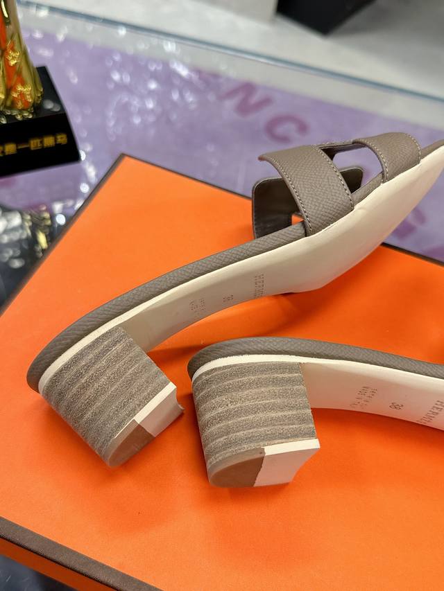 大厂手工 跑量款 精致工艺 爱马仕粗跟H拖系列
