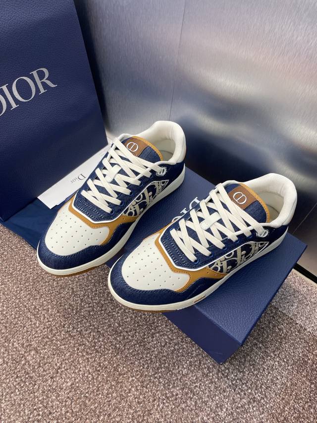 迪奥 2025春夏最新情侣款休闲鞋 Dior Oblique B27 Cd字母Logo压花圆头低帮系带滑板鞋 明星同款平底拼色运动鞋 原版开发 顶级代购品质