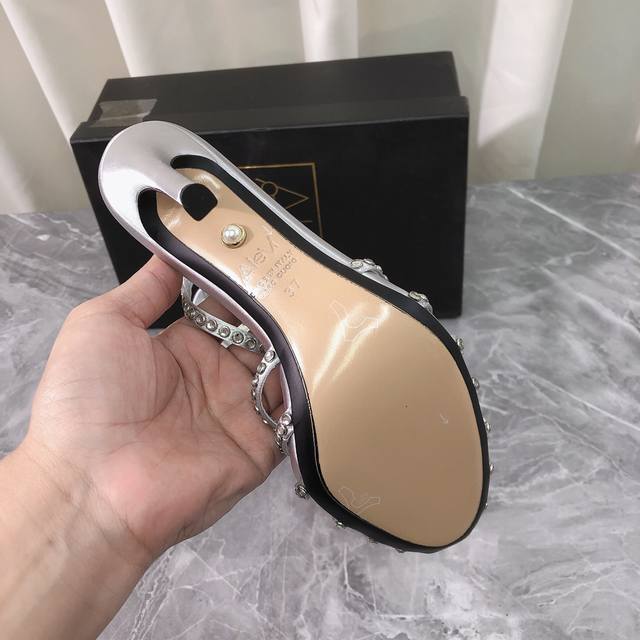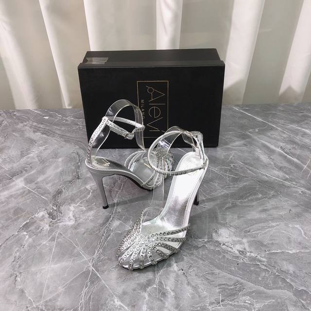 Alevi Mlano 阿列维 姆拉诺高跟鞋爆款来袭凉鞋。Am家真丝搭配烫钻系列高跟鞋抢手大爆款,Ins&小红书巨多网红明星上身!上脚超性感!真的太美了!有理由刮起时尚大风,让人沦陷的舒适感 高跟而不累脚,原版定制面料 对比市场最高版本。这款高跟搭配意大利原版进口真丝烫钻超有高级感!高级穿着又仙女 简约时髦又有设计感 而且都非常非常好穿,特别是后跟有生胶鞋底部有防滑胶垫走一天也不会累,实用又有质感,特别适合上班一族 原版开模定制颜色鞋型鞋底一摸一样 值得一提的