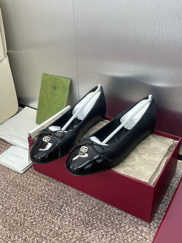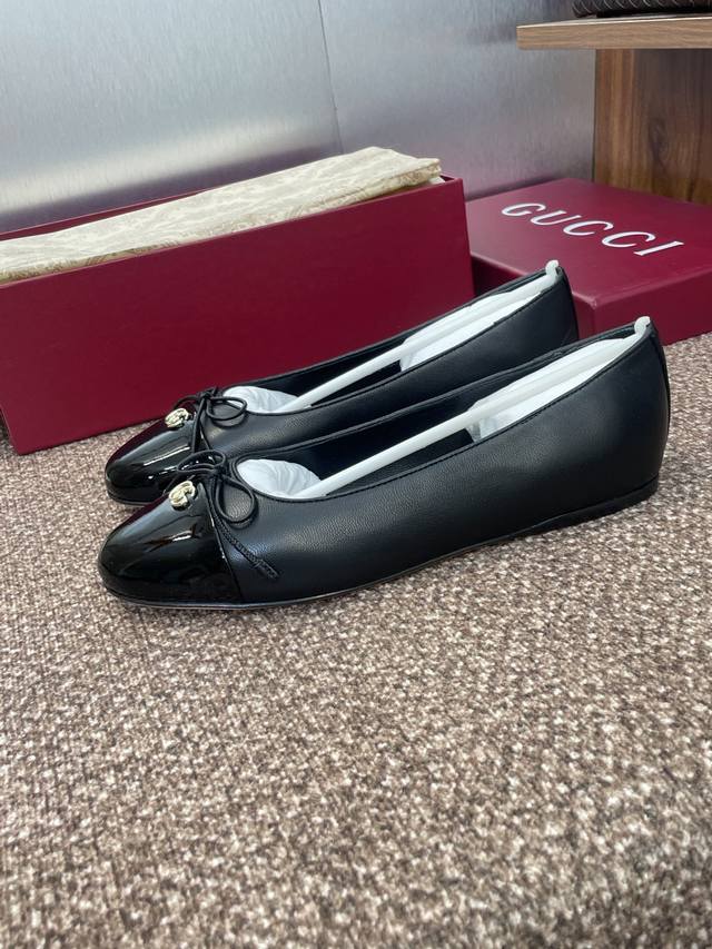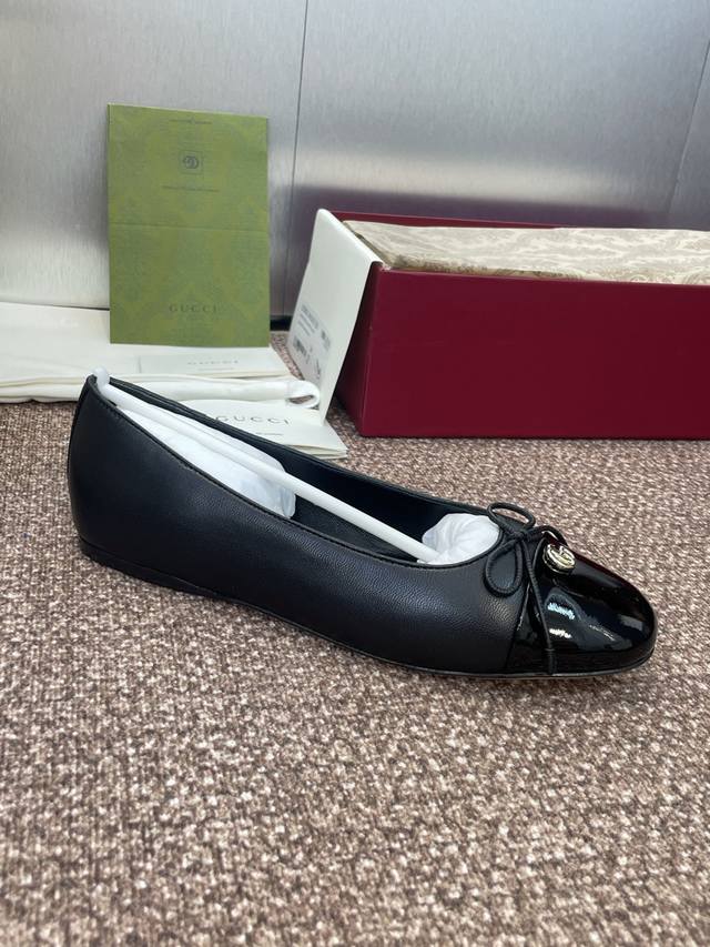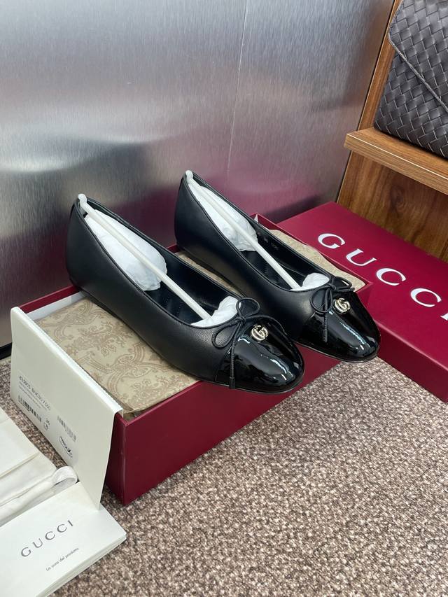 / 工厂P价P Gucci 古驰2025春夏新款果冻色蝴蝶结芭蕾舞女鞋 G家字母Logo五金扣平底单鞋 面料: 原版定制进口混种羊皮 羊漆皮+水染羊皮内里+意大利真