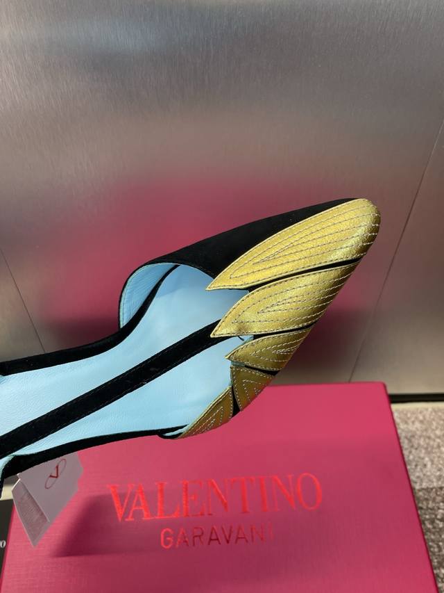 工厂P价P Valentino 2025春夏系列新款女鞋 华伦天奴高跟尖头电绣拼色后空凉拖鞋 材质:鞋面原版定制羊猄皮+水染羊皮内里+意大利真皮大底 跟高:8C