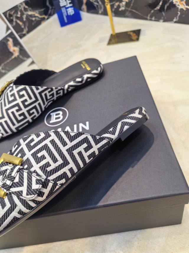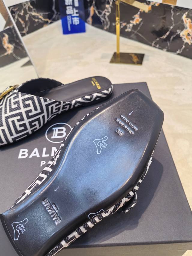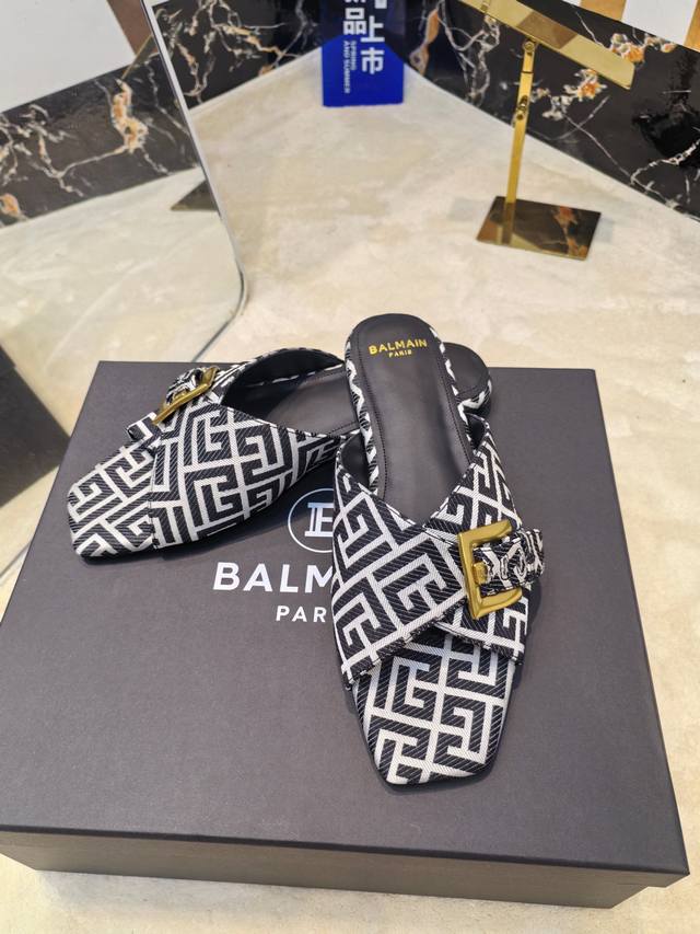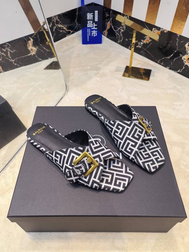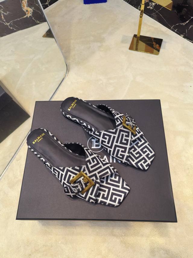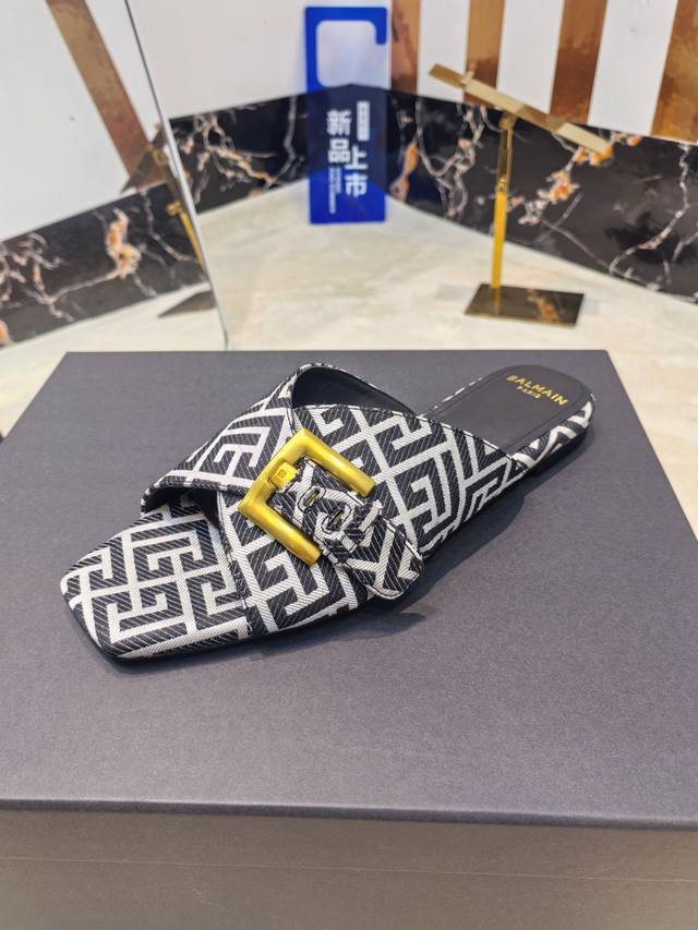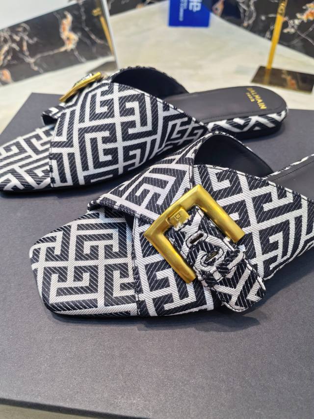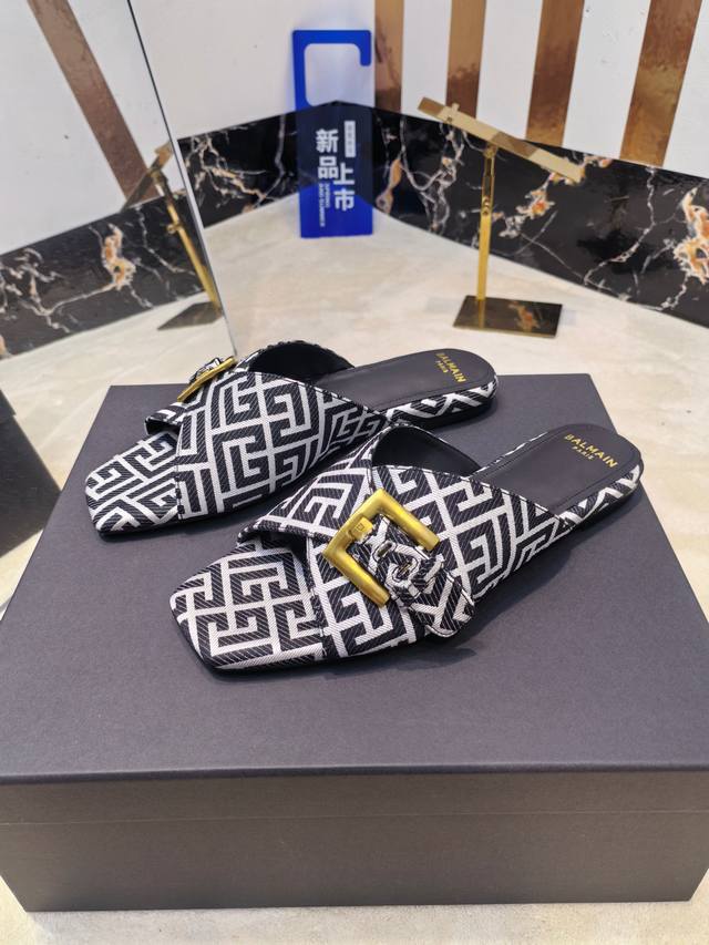 工厂P出 ,* 巴尔曼2025最新款走秀方头平底拖鞋