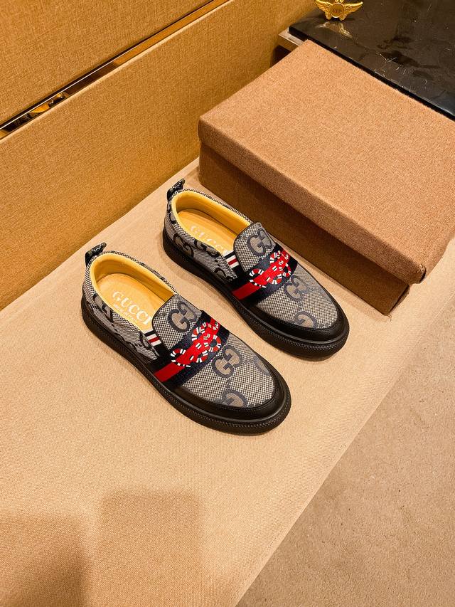 工厂P批 古奇 男鞋高端品牌 官网1:1最新力作:鞋面采用意大利进口头层牛皮搭配舒适透气内里原版防滑耐磨大底制作,让行走更加便捷舒适!独家新款,惊世之作,与官方