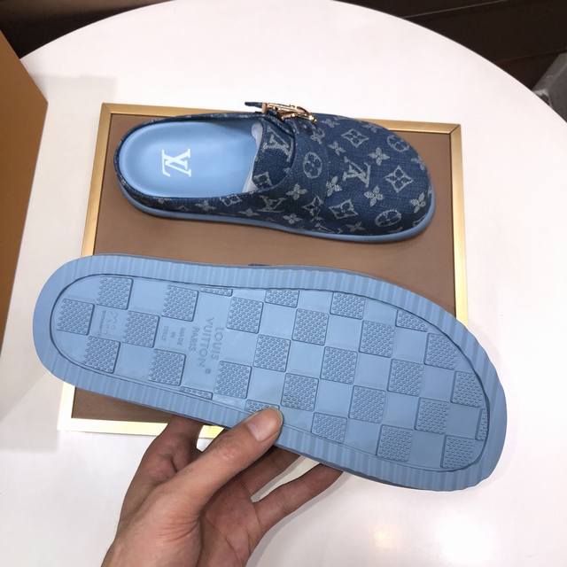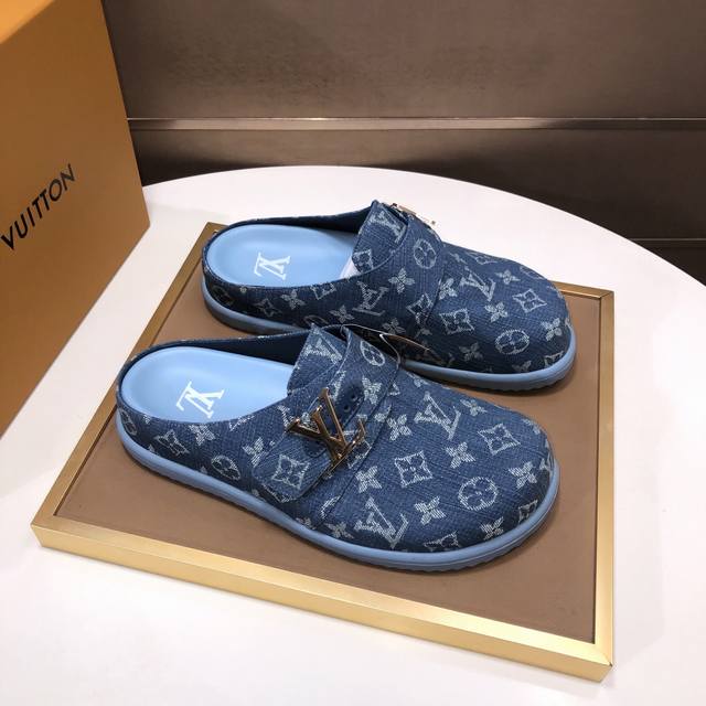 工厂P批 Louis Vuitton 牛皮内里 新款Lv路易威登 * 顶级版本 Lv经典半拖潮鞋!选用进口原版牛反绒牛皮,内里头层舒适牛皮内里!原版耐磨橡胶大底