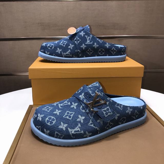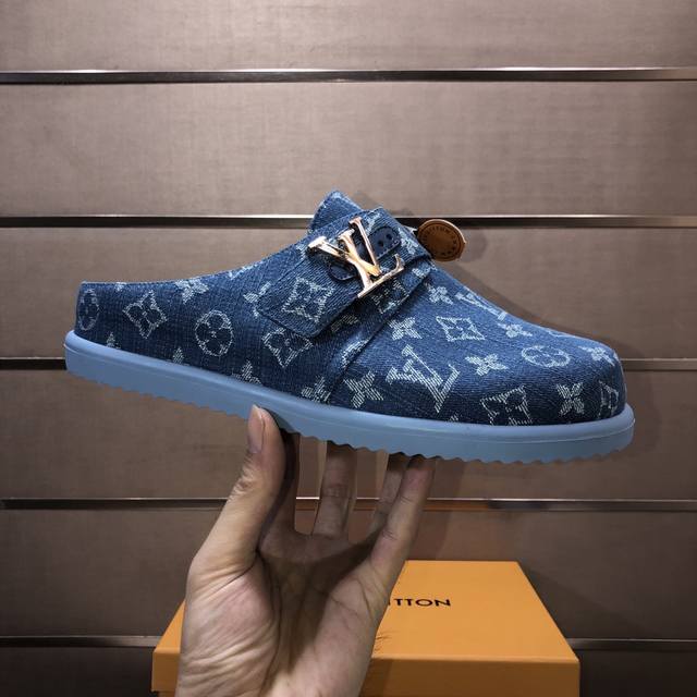 工厂P批 Louis Vuitton 牛皮内里 新款Lv路易威登 * 顶级版本 Lv经典半拖潮鞋!选用进口原版牛反绒牛皮,内里头层舒适牛皮内里!原版耐磨橡胶大底!高品质精品!码数38-45 45定做