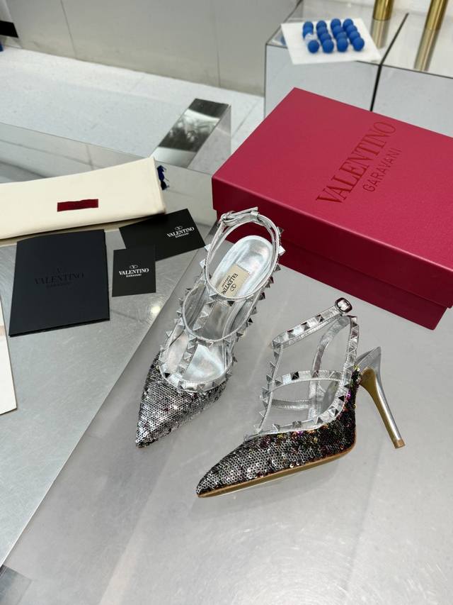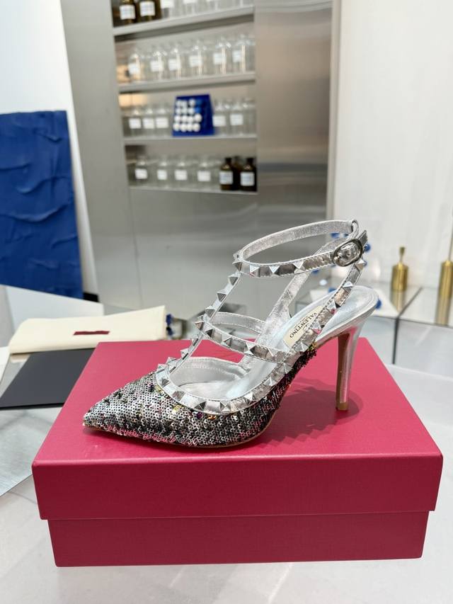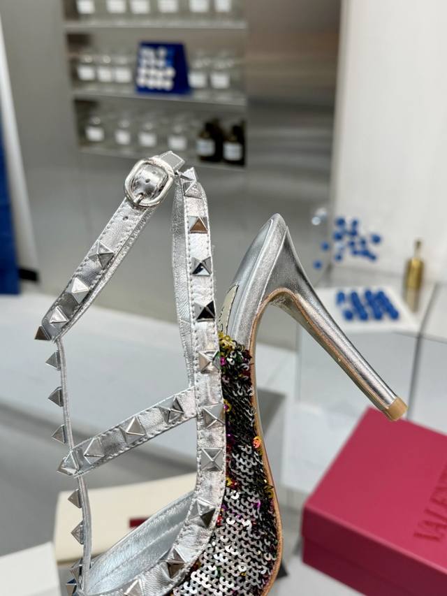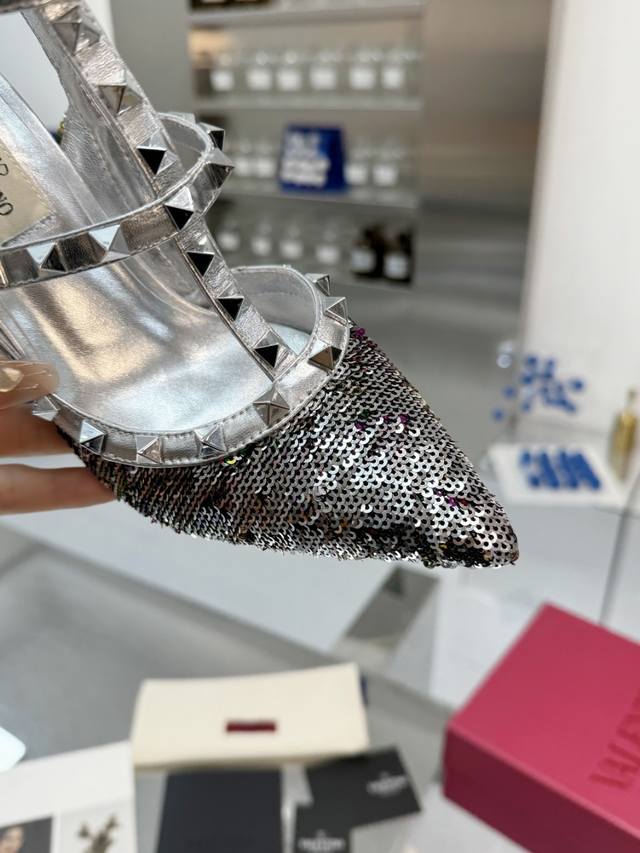 经典 小铆钉五金配件,鞋面亮片工艺衬托出满满的高级感,新一季不负期待!