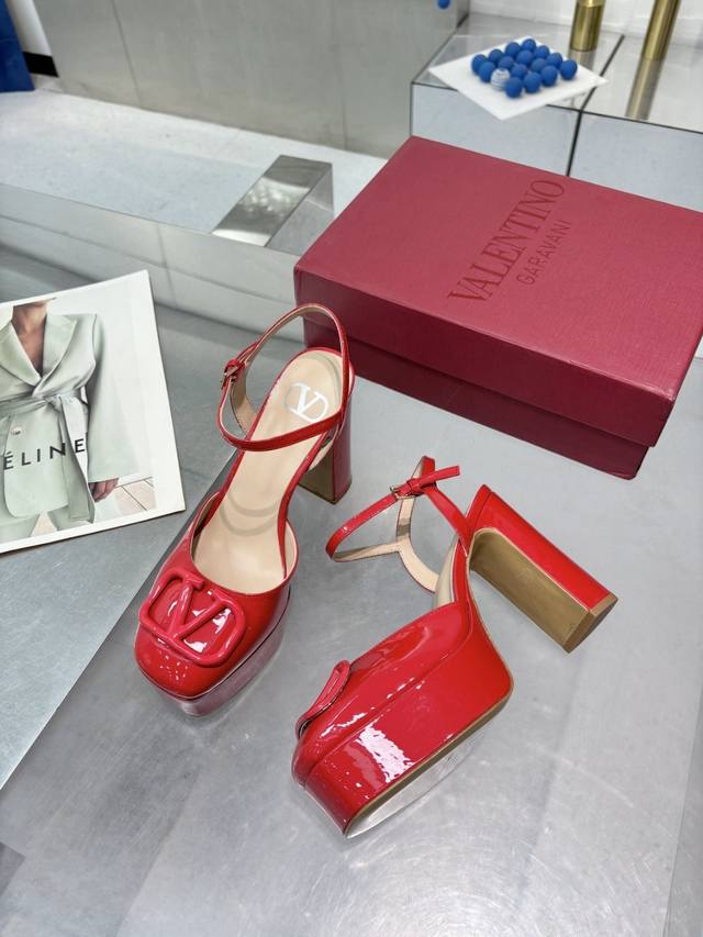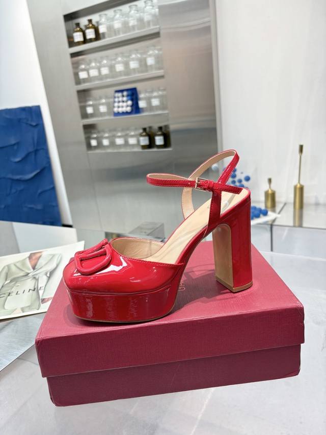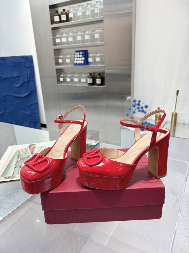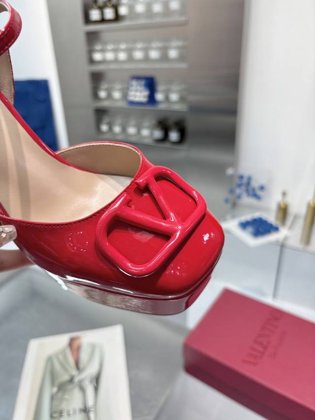 工厂P 顶级代购版本 Valentno 华伦新秀款! 2025Ss最新金属Logo 坡跟高水台凉鞋!原版购入1:1顶级复刻!精致的楦型设计,侧身弧线完美! 精选