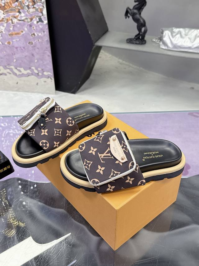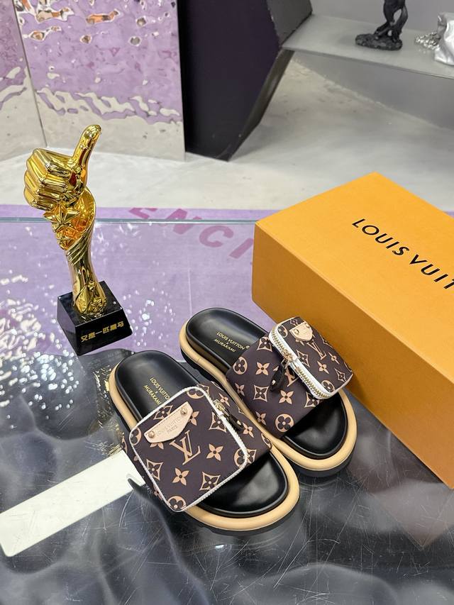 Lv情侣款专柜主打最新款牛仔拖鞋硬货上新