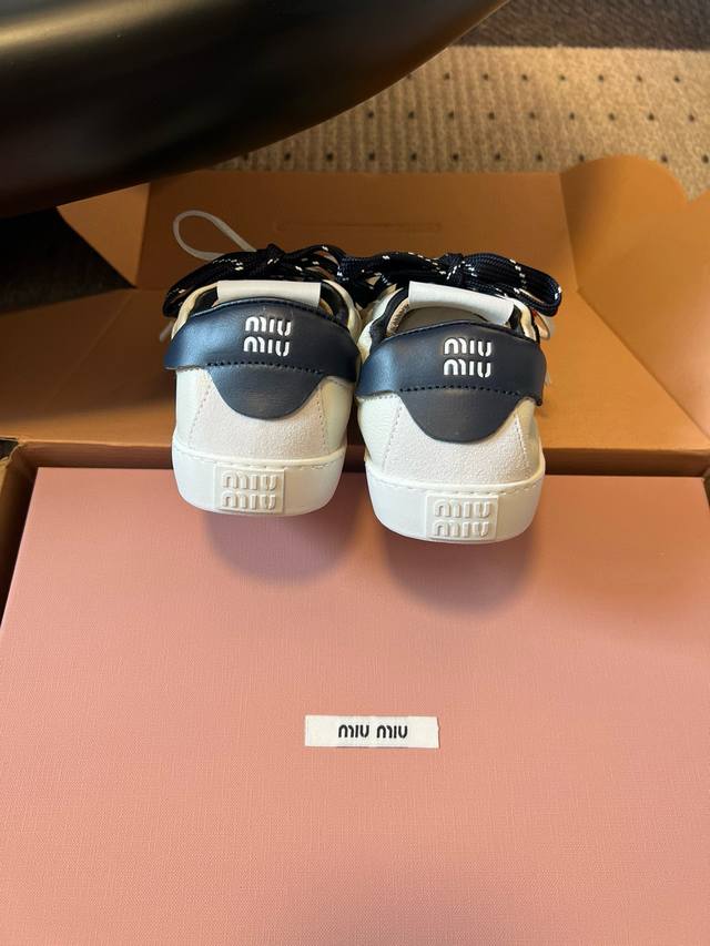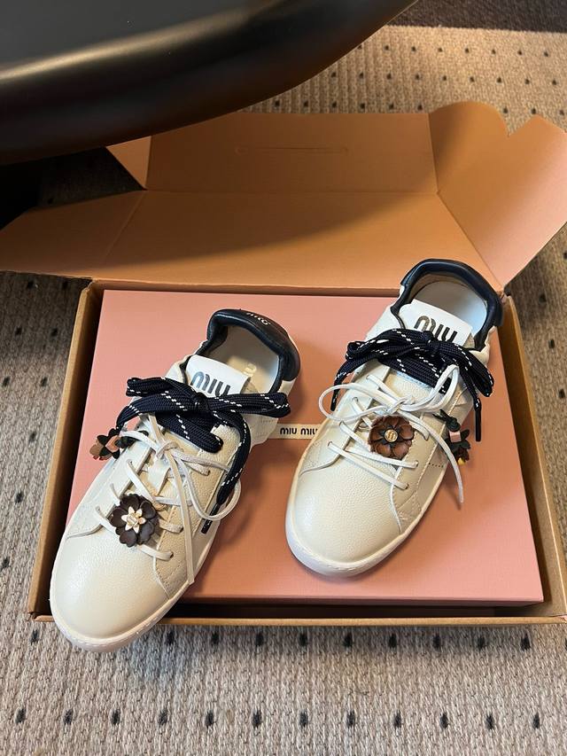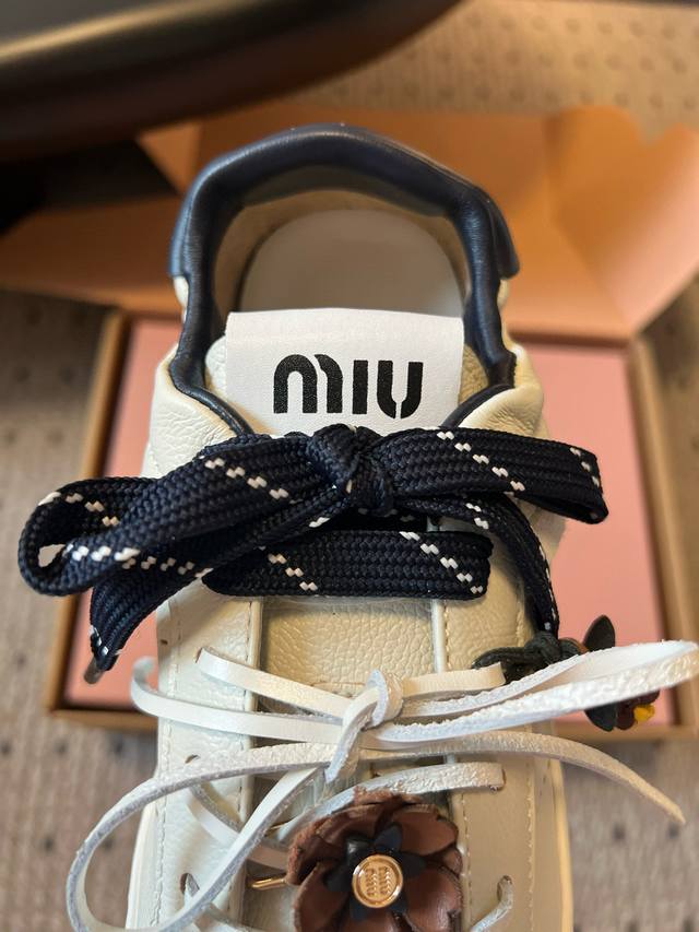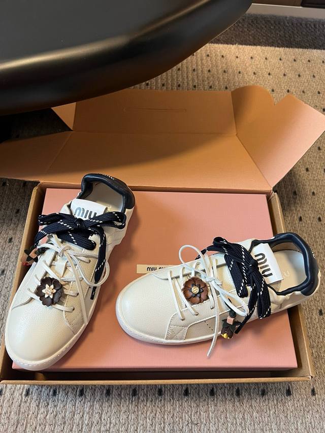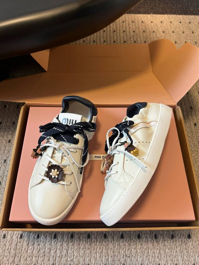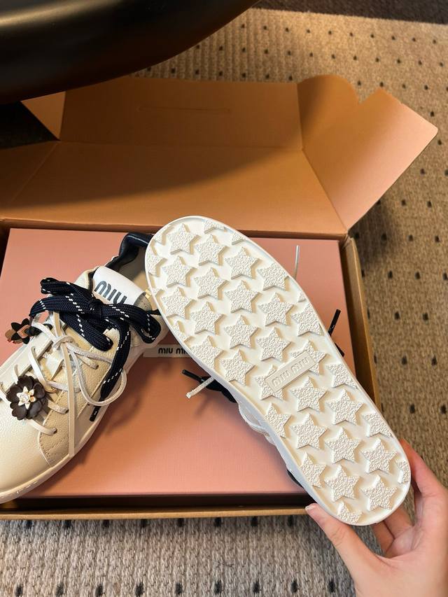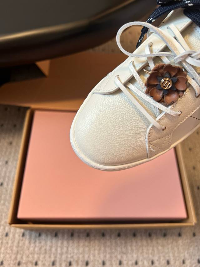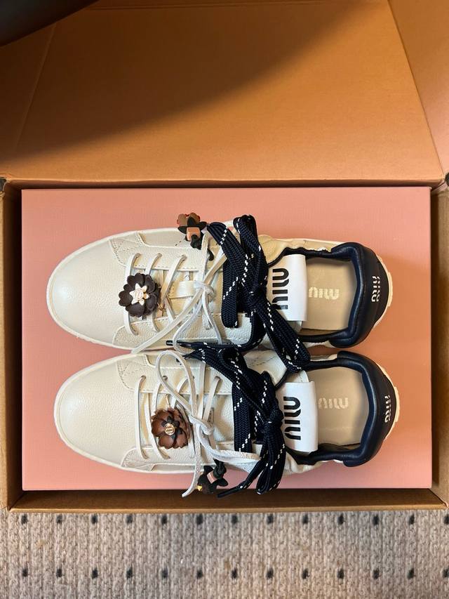 带飞机盒 不带飞机盒不带花230 Miu Mi* 25Ss 缪缪薄底饼干底 25Ss 春夏新款英伦风系带 小白鞋 休闲鞋