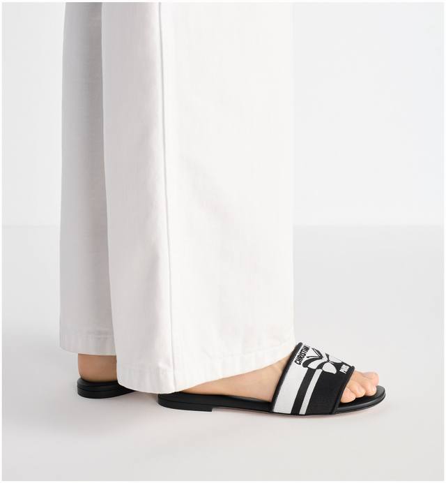 意大利进口真皮底 迪奥平底一字拖鞋,鞋面尼龙棉热熔胶电绣编织,刺绣字母,内里羊皮,垫脚3D打印图案设计独特风格,码数35-41