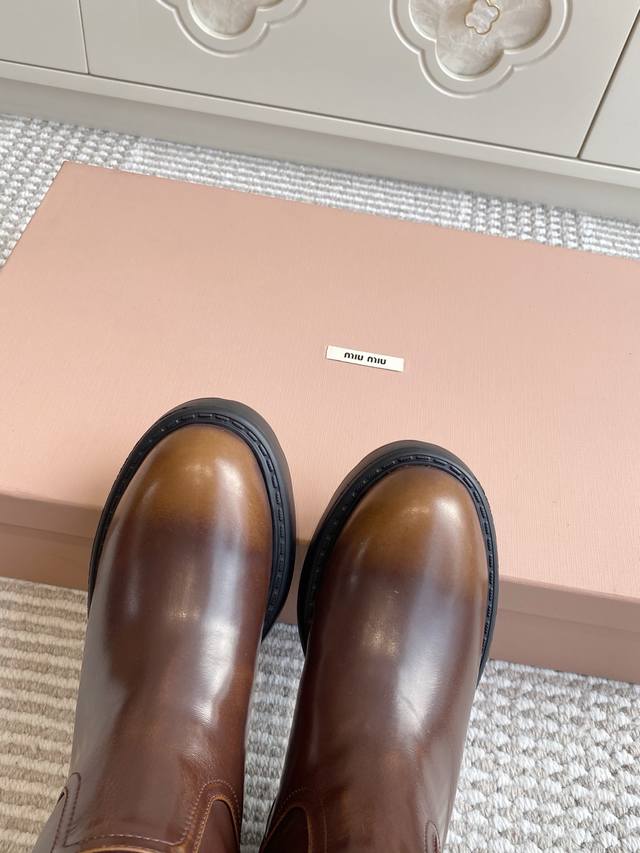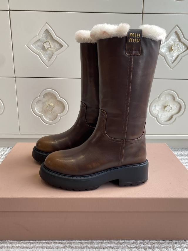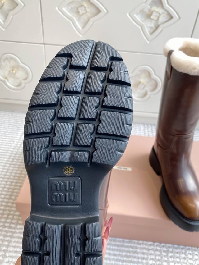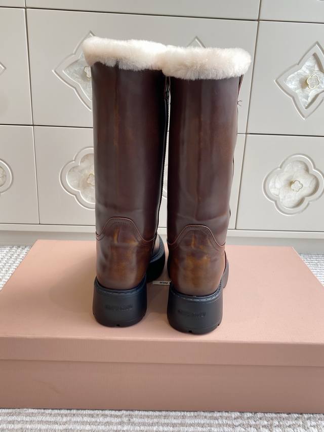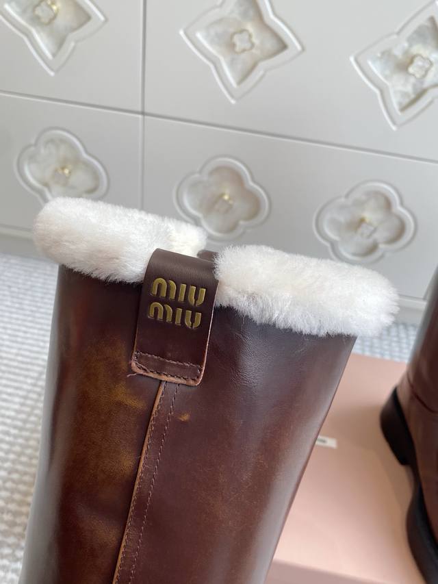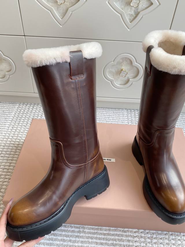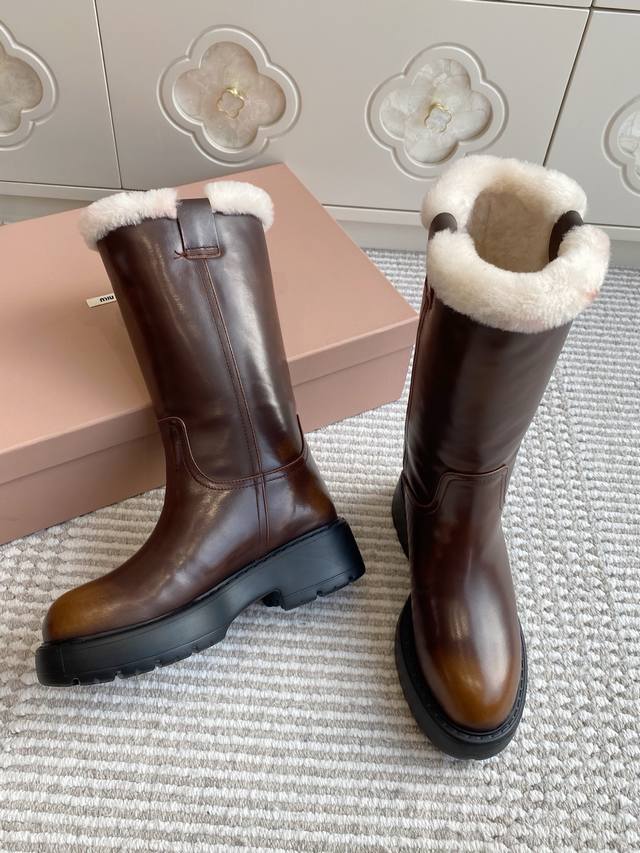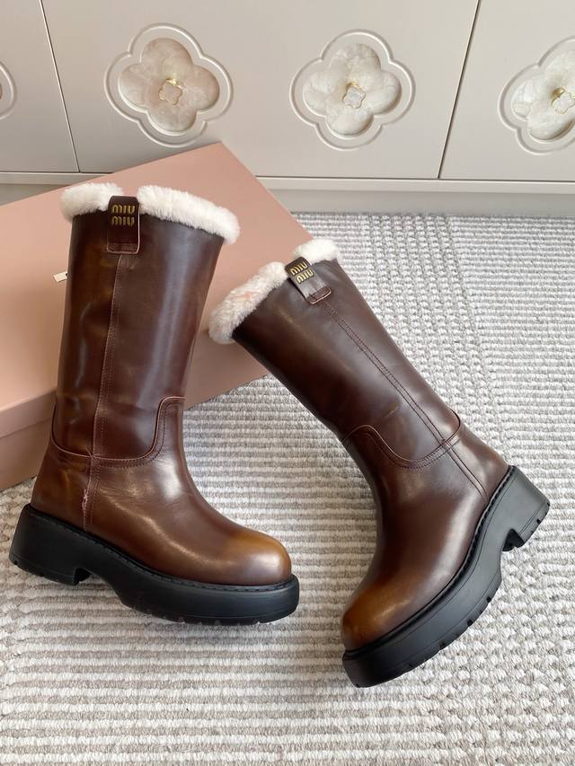Miumiu 缪缪25Ss秋冬 超大热走秀款 厚底防滑保暖毛里中筒靴马丁靴毛毛靴