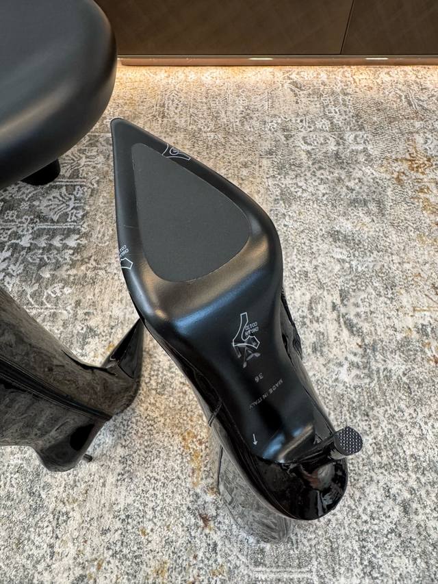 新品上架 ★面料 漆皮 内里 羊皮 鞋底 牛皮大底 原版注塑 优雅风格 创造不一样的感觉 跟高10 Cm 专柜包装 简约气质款式! Show Bdetails