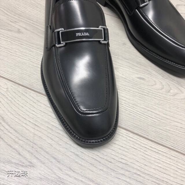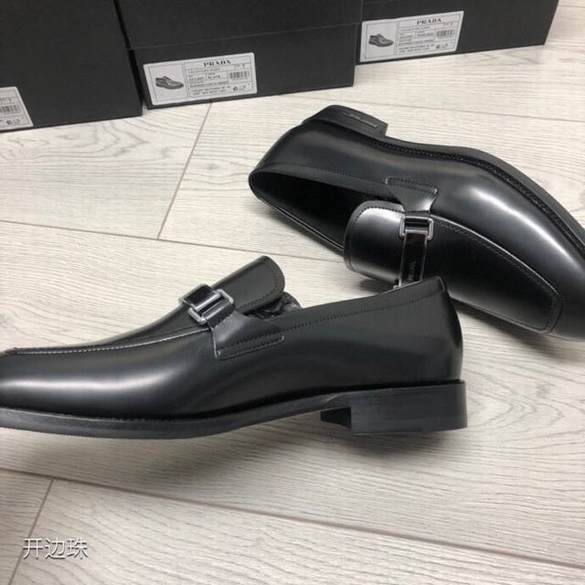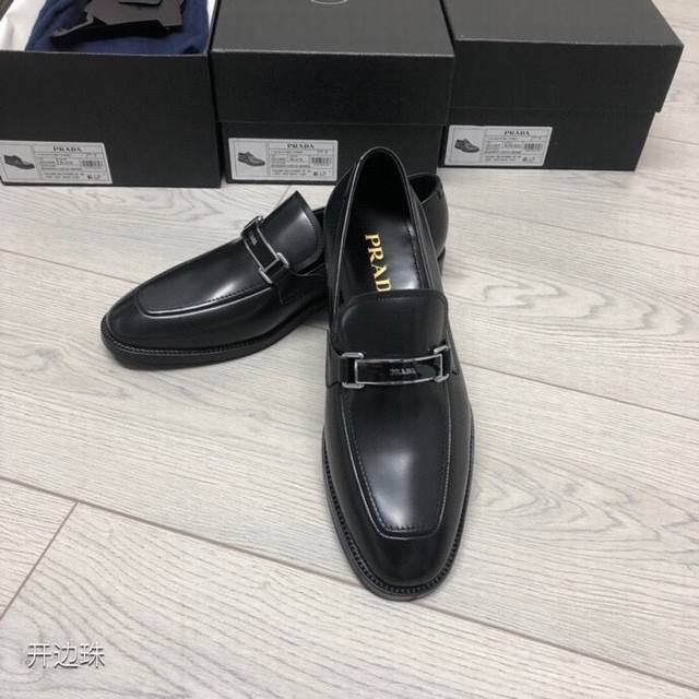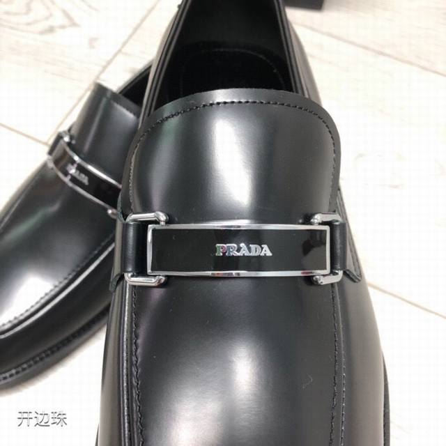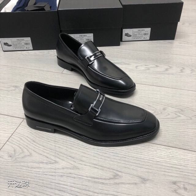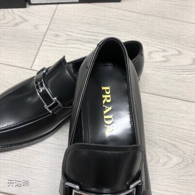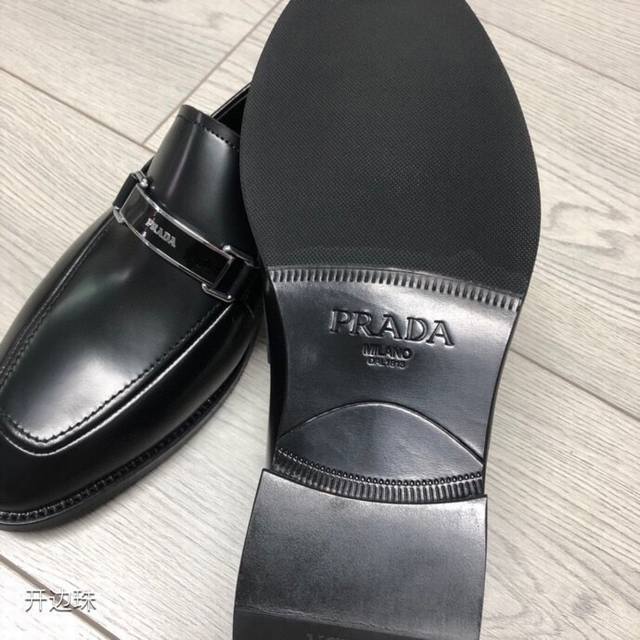 新品Prad*精品四季鞋 意大利进口开边珠牛皮 搭配经典条形Logo饰扣 柔软牛皮内里+牛皮垫脚 原版真皮大底+已加橡胶片可直接上脚穿啰 超舒服的一款 男神必备品 支持对比