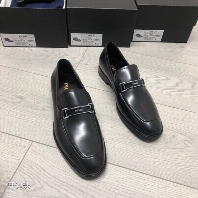 / 新品Prad*精品四季鞋 意大利进口开边珠牛皮 搭配经典条形Logo饰扣 柔软牛皮内里+牛皮垫脚 原版真皮大底+已加橡胶片可直接上脚穿啰 超舒服的一款 男神必备