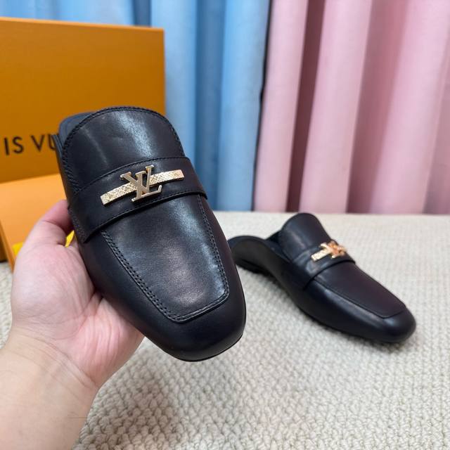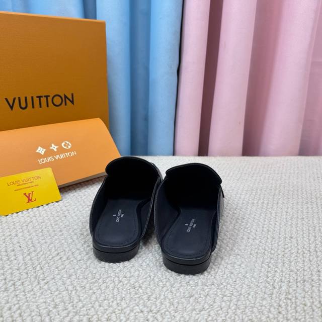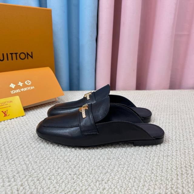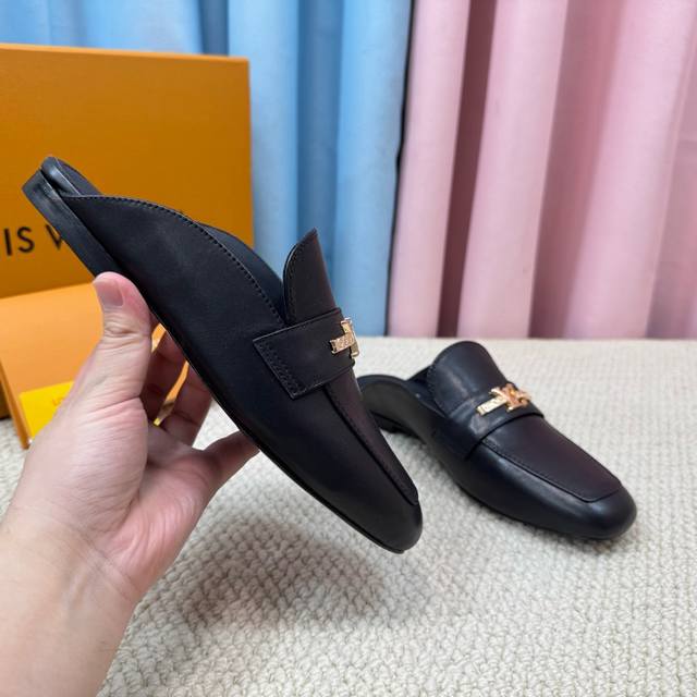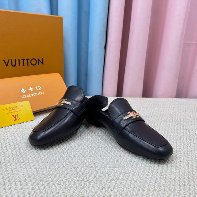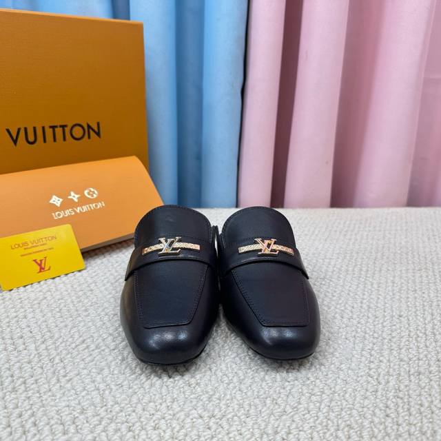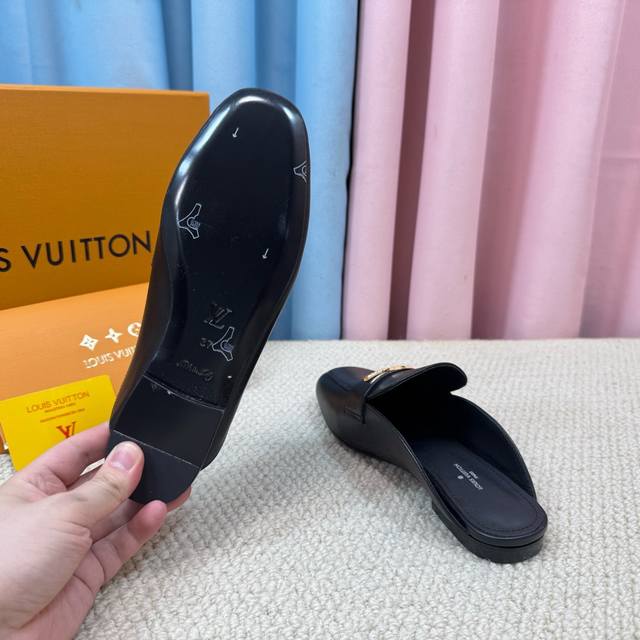 / 新款的 Lv 路易威登 早春新品 顶级版本 专柜主打最新款 拖鞋 猫跟拖鞋 硬货上新 鞋面:牛皮 粒面牛皮 牛仔布 内里:进口山羊皮里 跟高:平底 鞋码: 35