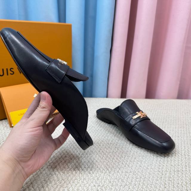 新款的 Lv 路易威登 早春新品 顶级版本 专柜主打最新款 拖鞋 猫跟拖鞋 硬货上新 鞋面:牛皮 粒面牛皮 牛仔布 内里:进口山羊皮里 跟高:平底 鞋码: 35